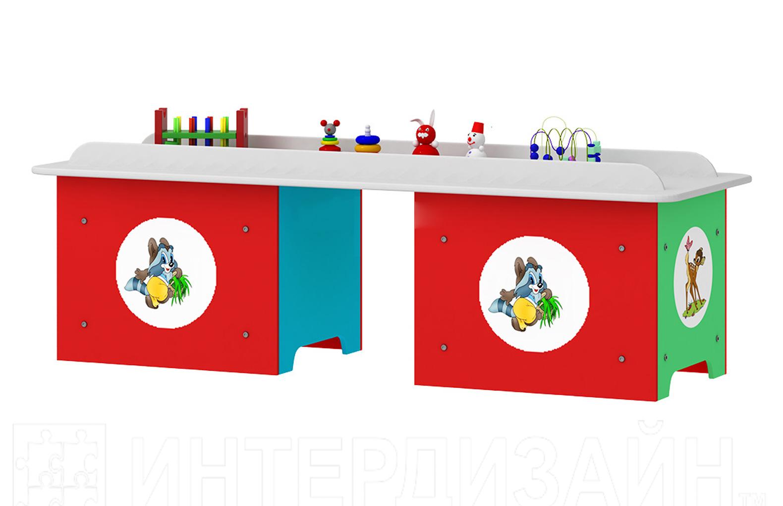Стол предназначен для развития детских творческих способностей. Размер (LxBxH): 1520х600х510. Материал - фанера 15 мм. Края столешницы ограждены бортиками. Продукция имеет надлежащие сертификаты качества. Конструктор Геометрик(1 шт) КуклаТопа ;(1 шт.) Пирамидка-Гоша (1 шт) Кубики;Фрукты (4 дет.) Грибочки;(1 шт.) Стучалка(1 шт.) Доска вкладыш(1 шт) Счетики Радуга (1 шт) Игрушка Лягушка;(1 шт) Сортировщик (1 шт)