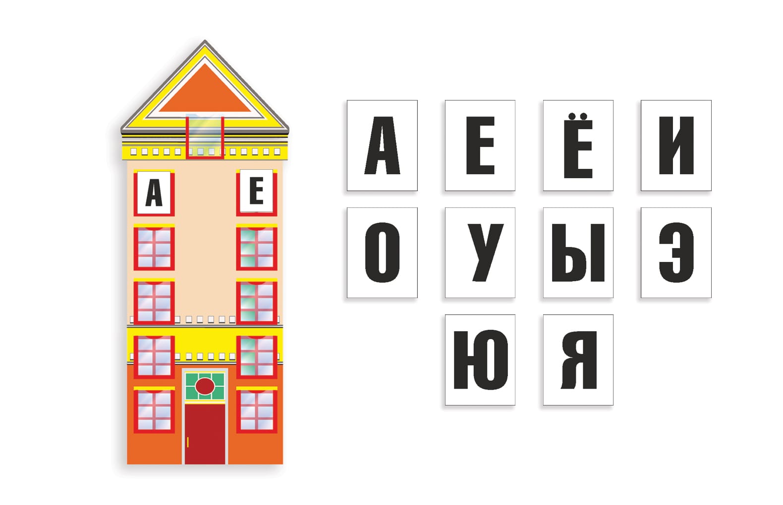 В комплектеСтенд Домик гласных букв, 10 карточек букв, фурнитура для крепления