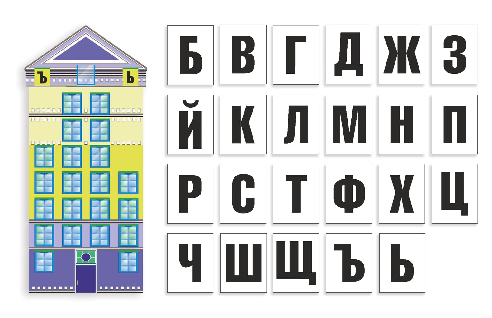 Обратите внимание на пособие для изучения согласных букв.