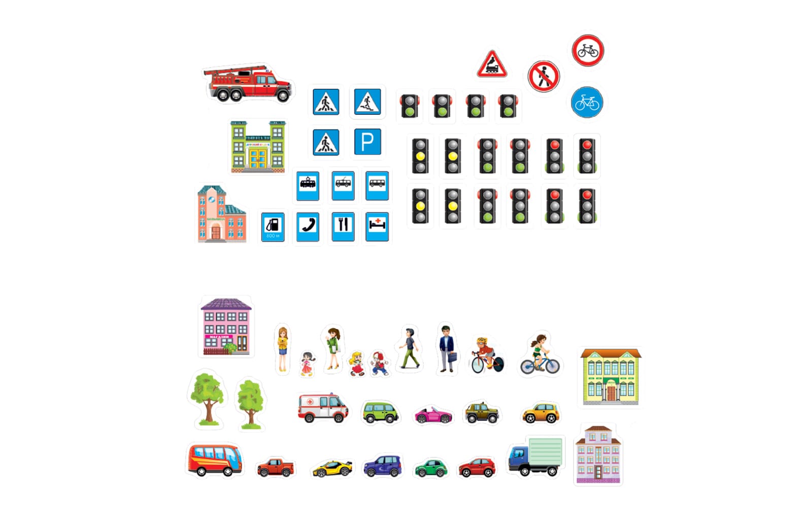 Комплект деревянных магнитов ПДД (60 шт) Эко формат! - Описание