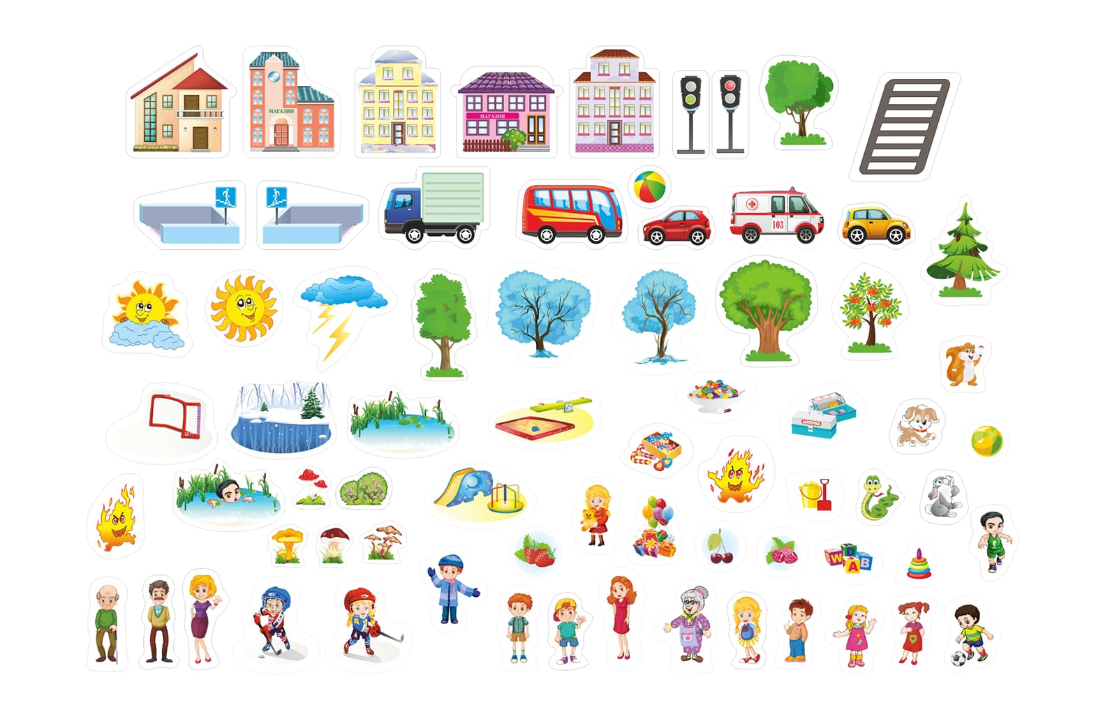 Комплект магнитов "Безопасность/Правильное поведение" по мотивам авторских сказок - Описание