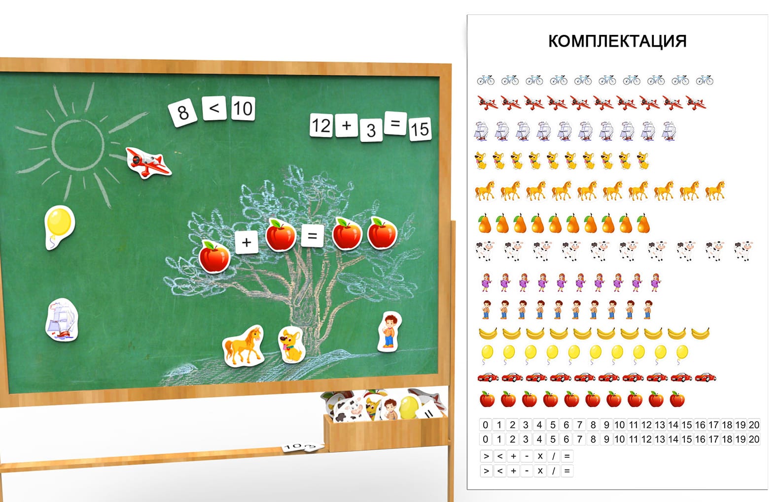 Математический комплект предназначен для визуализации процесса обучения счету и математике в дошкольном и младшем школьном возрасте.