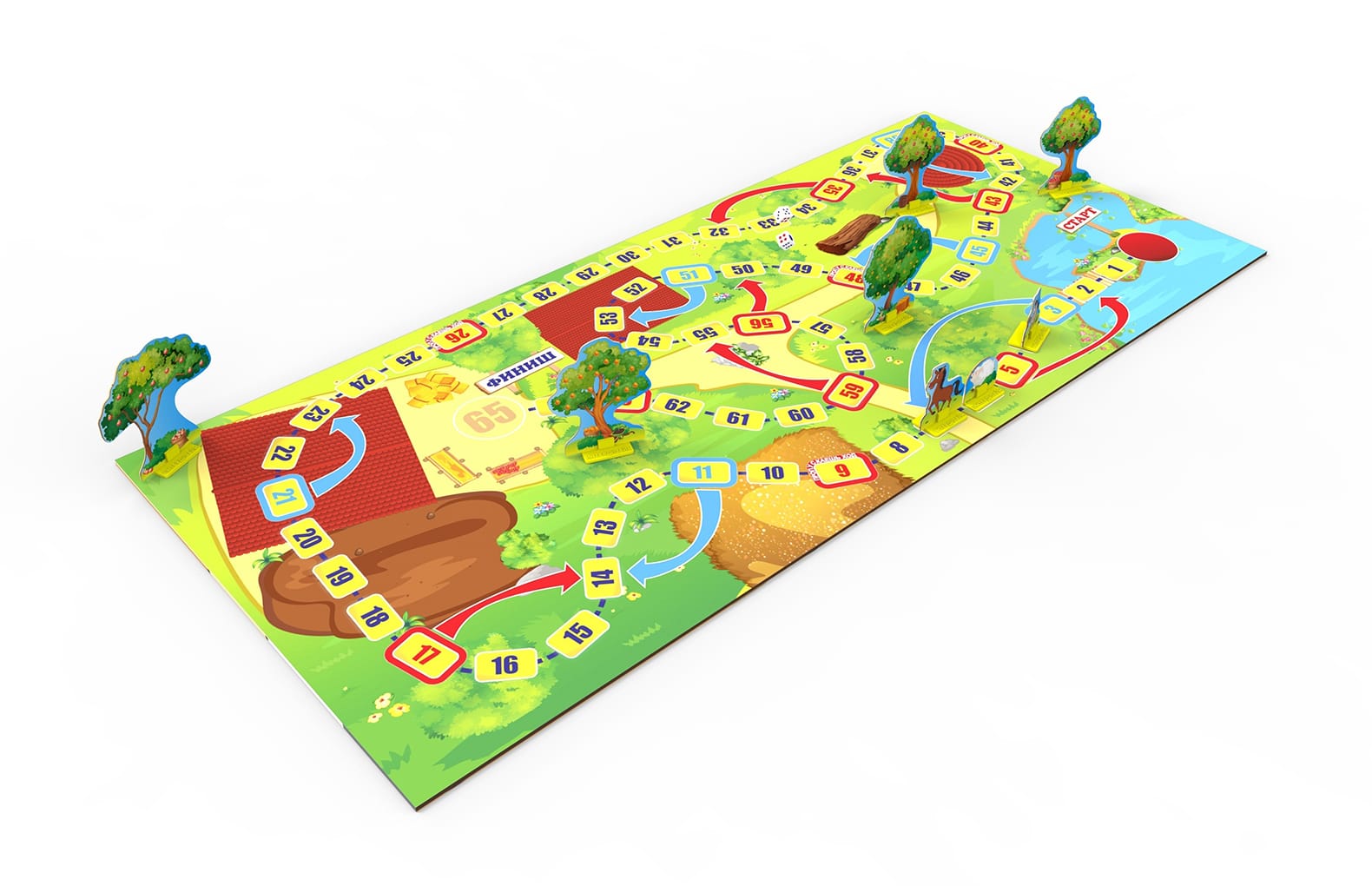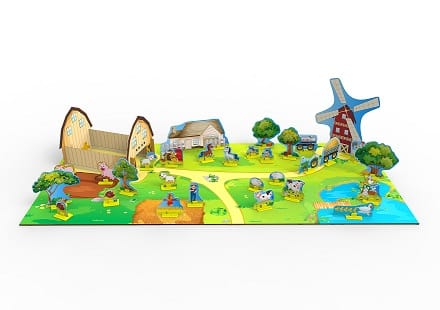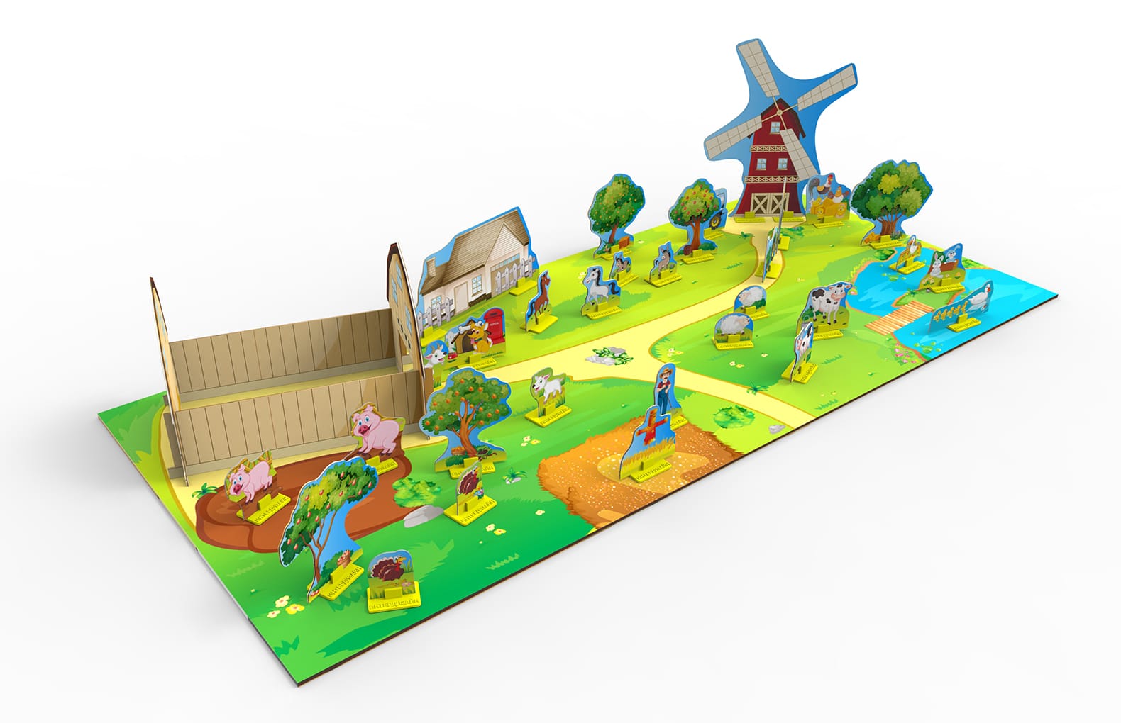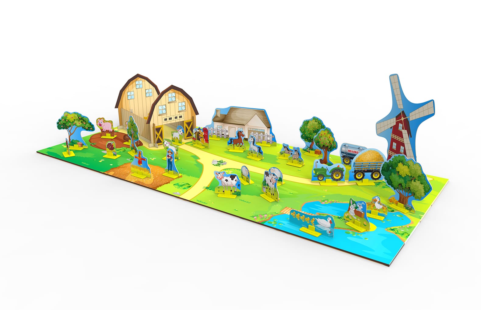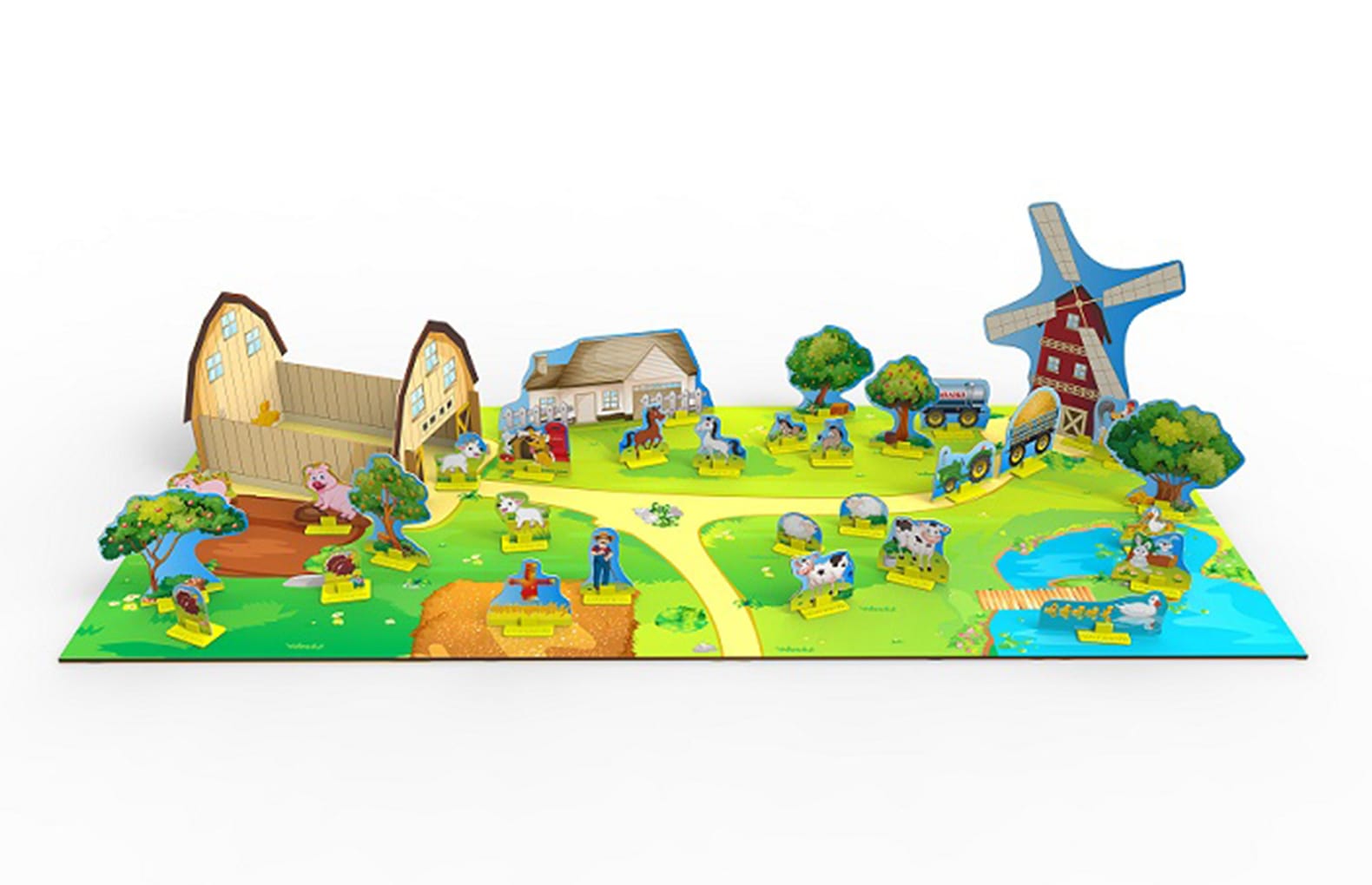 - 36 фигурок (животные, деревья, дома, мельница и т.д.);