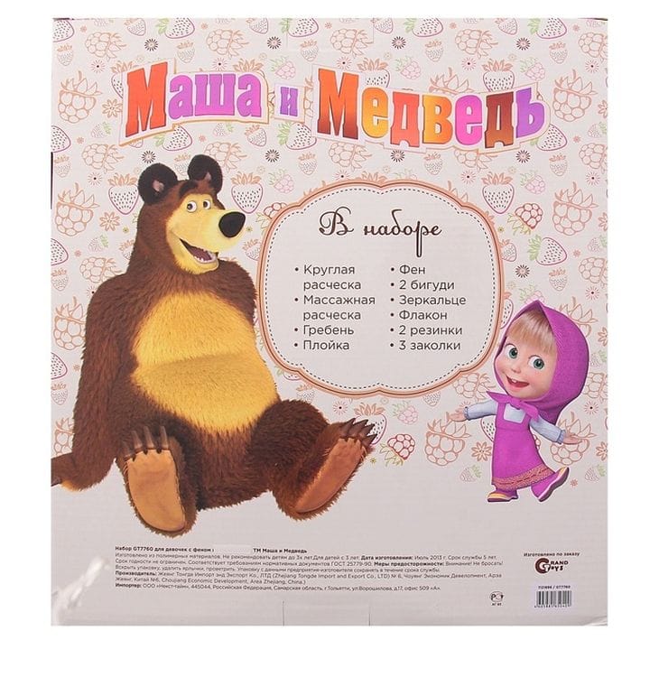 С ярким набором "Маша-парикмахер" девочкам однозначно не придется скучать! Море положительных эмоций будет обеспечено, ведь набор включает в себя основные инструменты парикмахера: круглую расческу, массажную расческу, гребень, плойку, фен, 2 бигуди, зеркальце, флакон, 2 резинки, 3 заколки.