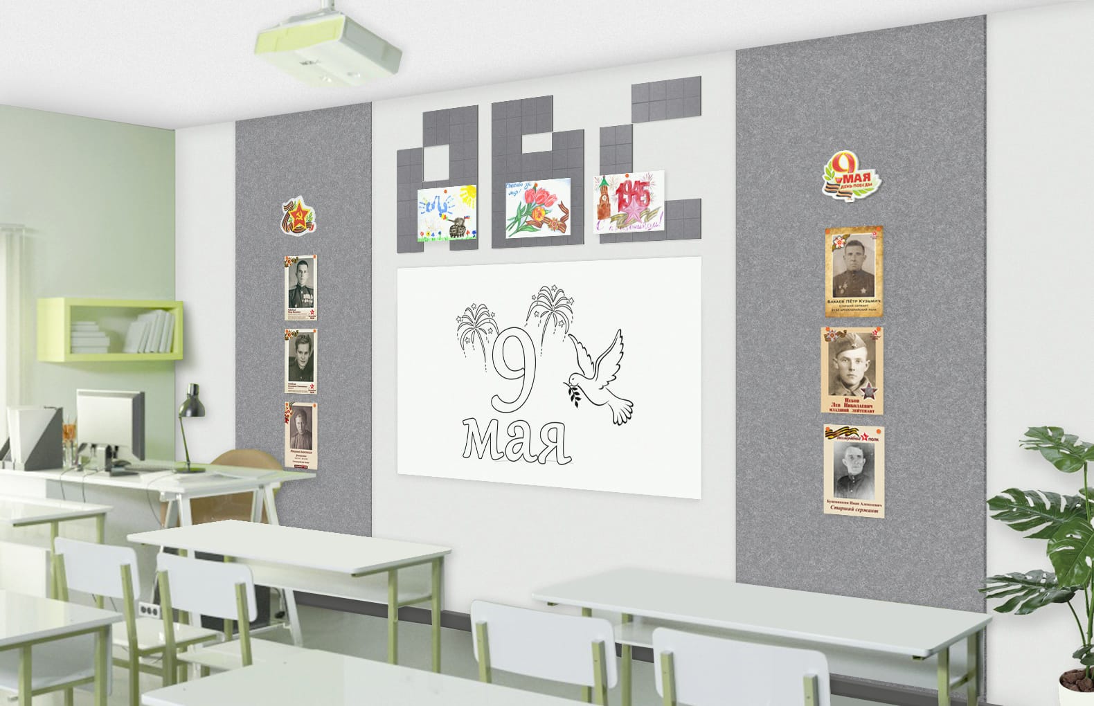 Материалы:акустический эко-войлок 9 мм, магнитно-маркерное покрытие