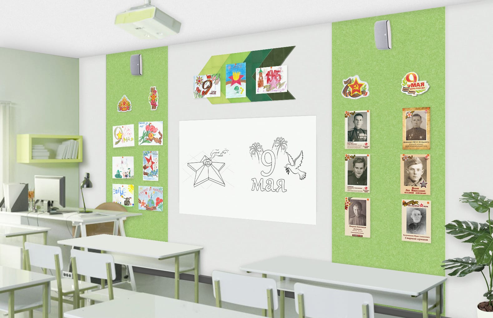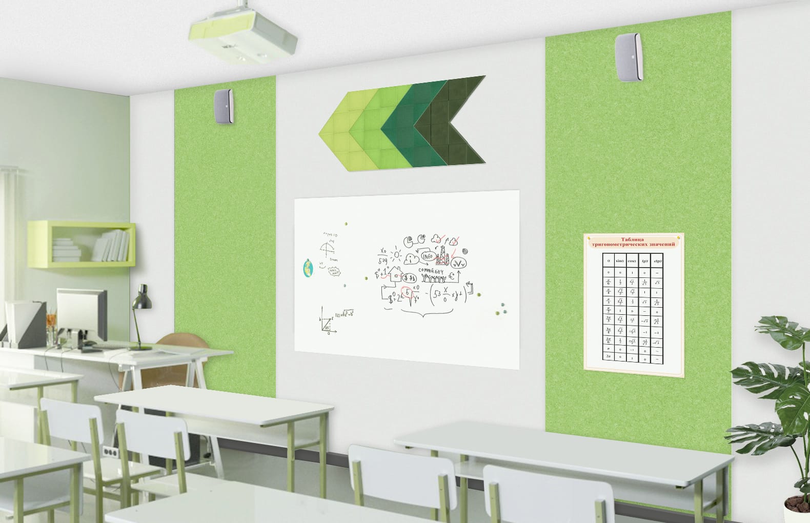Материалы:акустический эко-войлок 9 мм, магнитно-маркерное покрытие