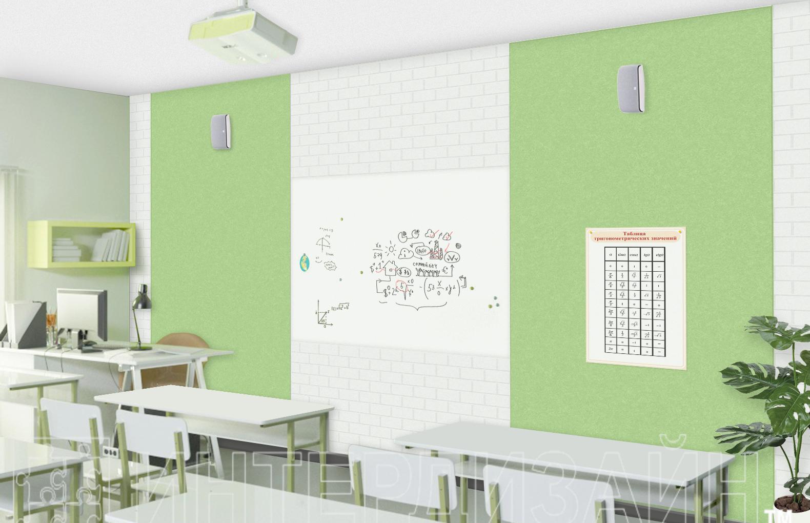 В данном решении основная площадь зоны доски оформлена акустическими панелями из эко-войлока.