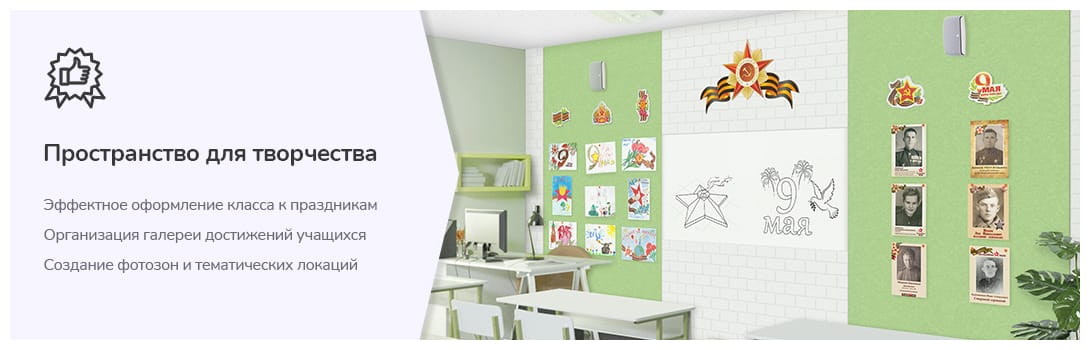 Это представляет массу возможностей для реализации различных творческих идей, создания тематических учебных экспозиций, эффектного оформления класса к праздникам, создания фотозон.