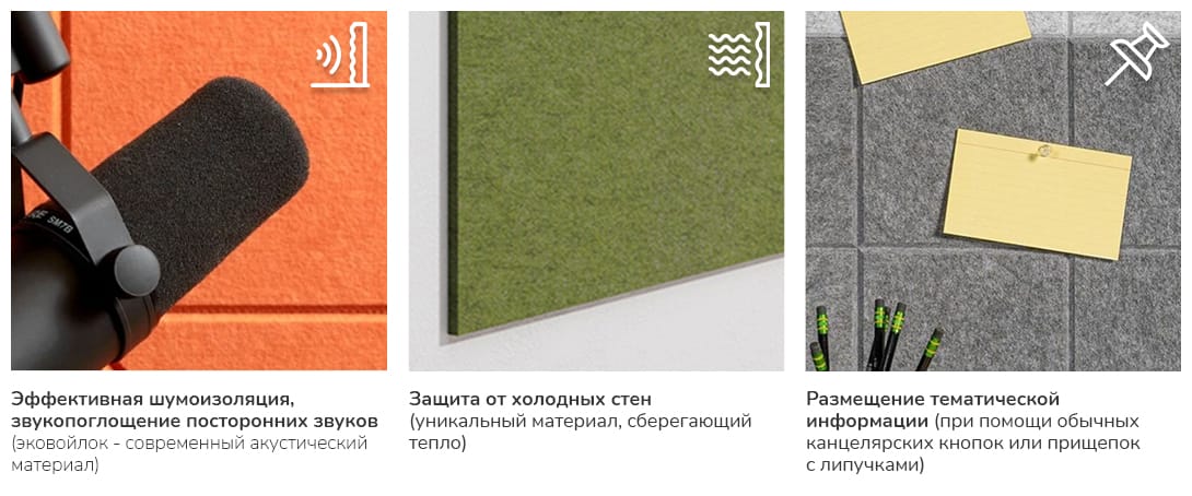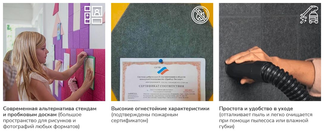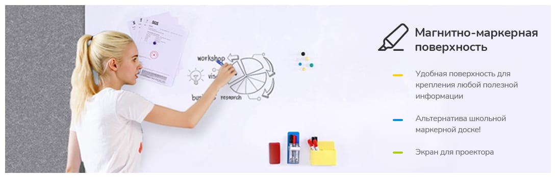 Материалы:акустический эко-войлок 9 мм, магнитно-маркерное покрытие