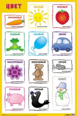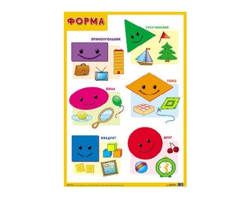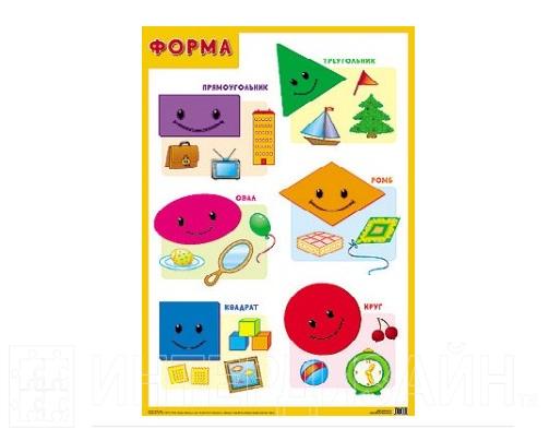 В набор входит четыре плаката: овощи, формы, фрукты и ягоды, цвет .