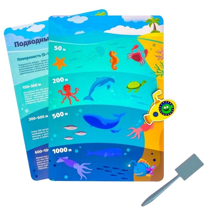 Фигурки притягиваются к жезлу благодаря встроенным магнитам. Ребёнок будет двигать его по игровому полю, вместе с ним перемещать фигурки и выполнять задания с карточек.