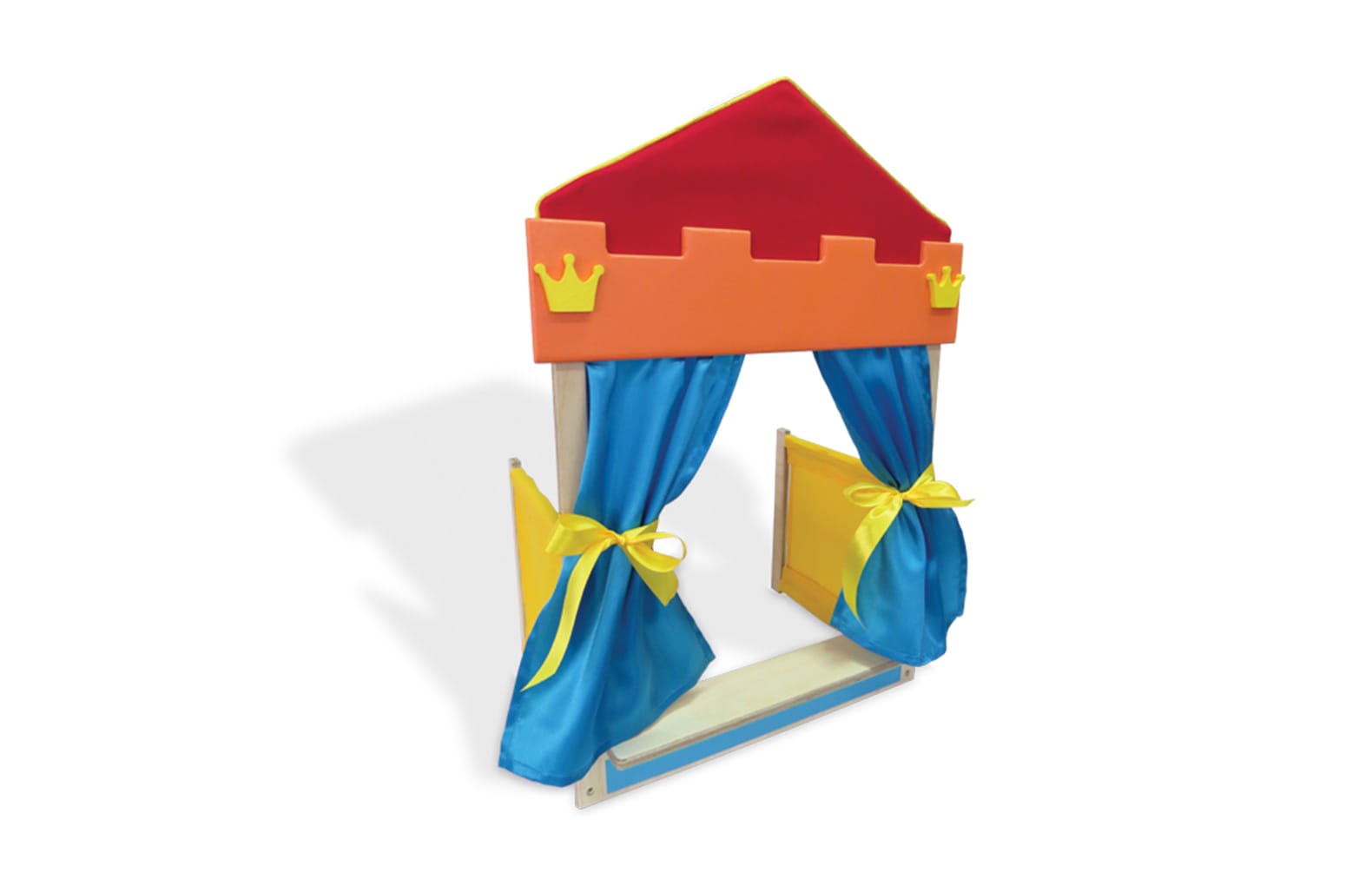 Ширма выполнена в стиле сказочного замка, в котором, можно разыграть множество сценок. Детки с радостью будут принимать участие в постановках, ведь с такой ширмой создается атмосфера настоящего кукольного театра.