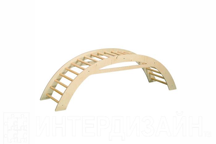Мостик большой — отличный спортивный тренажер для маленького непоседы. На нем можно не только полазить, развивая ловкость и силу мышц, но и расслабленно покачаться, перевернув «с ног на голову». Или вовсе поставить на бок, огородив свое игровое пространство. Размер изделия — 203х63х50 см. Перекладины изготовлены из массива дерева. Вес 25 кг