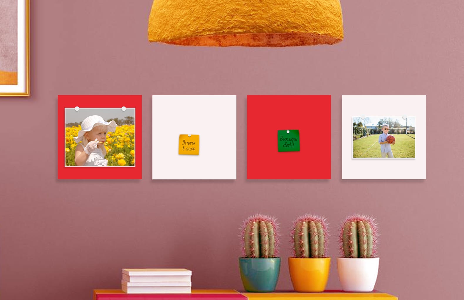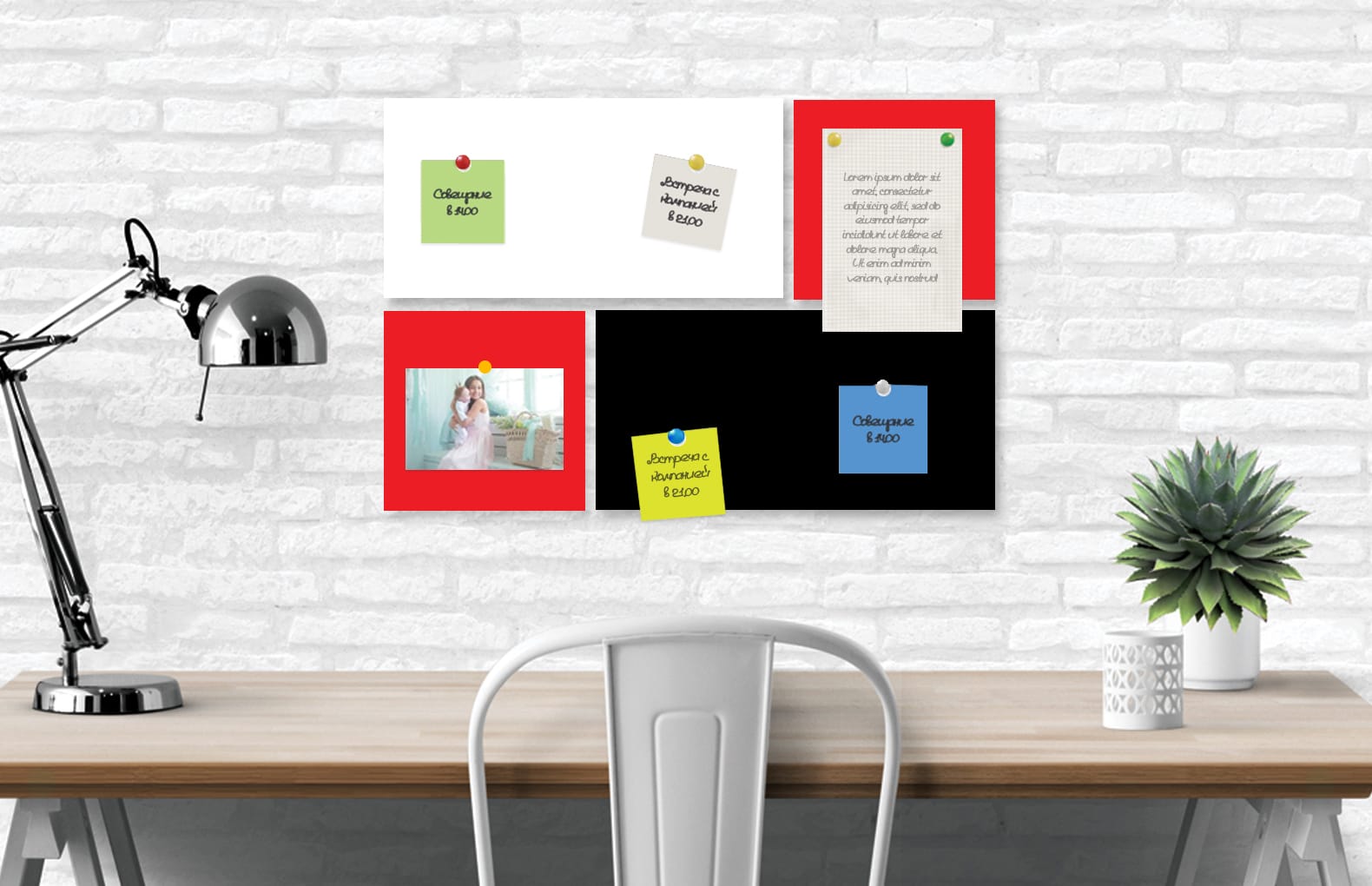 Вы можете комбинировать цветные панели или размещать их в интерьере с белыми магнитно-маркерными панелями. Такие комбинации задают стиль помещению, придают ему определенный характер.
