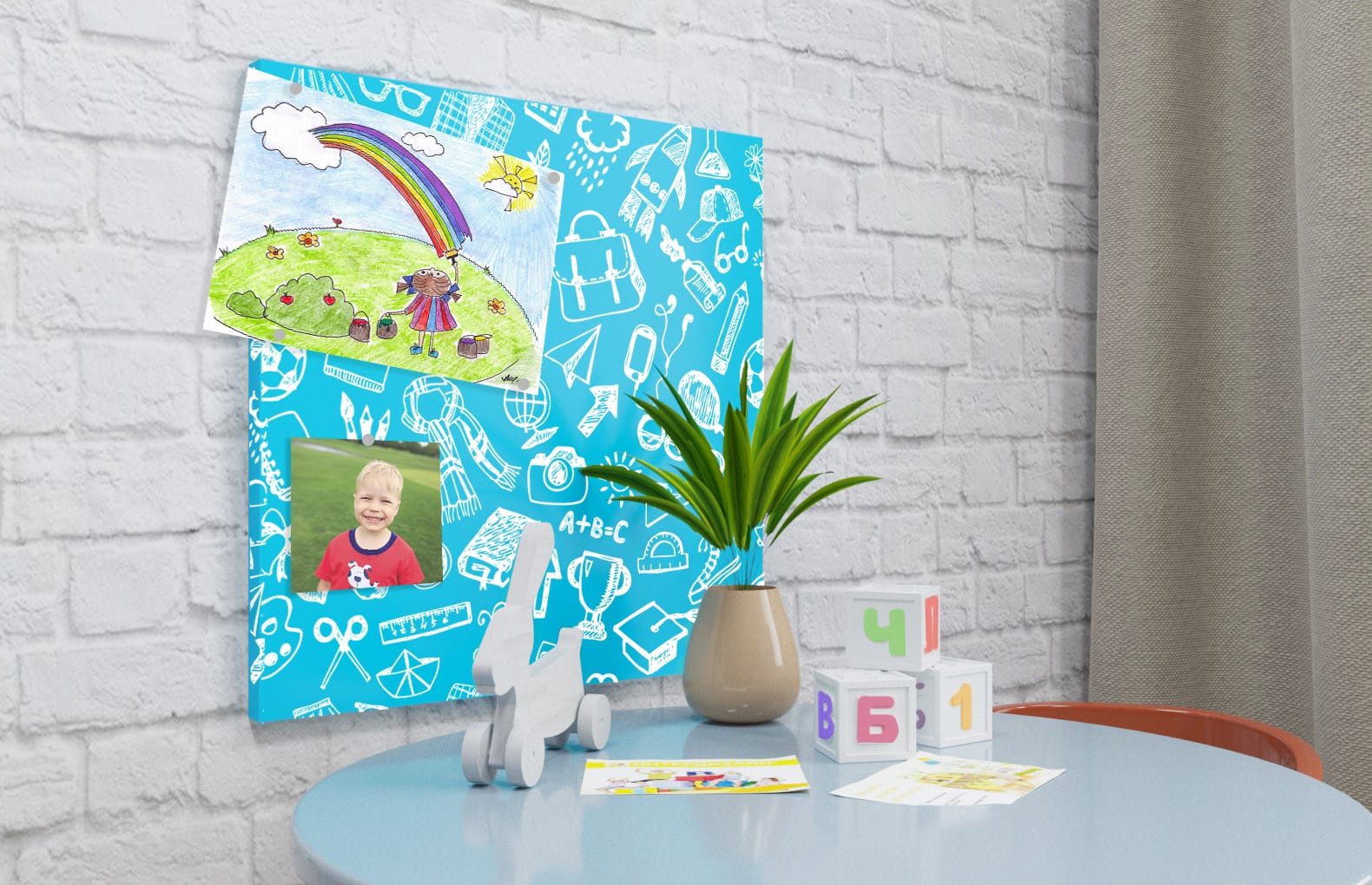 Представляем Вам магнитную панель для размещения рисунков, фотографий, заметок, расписания занятий, распорядка дня, а также другой полезной информации.