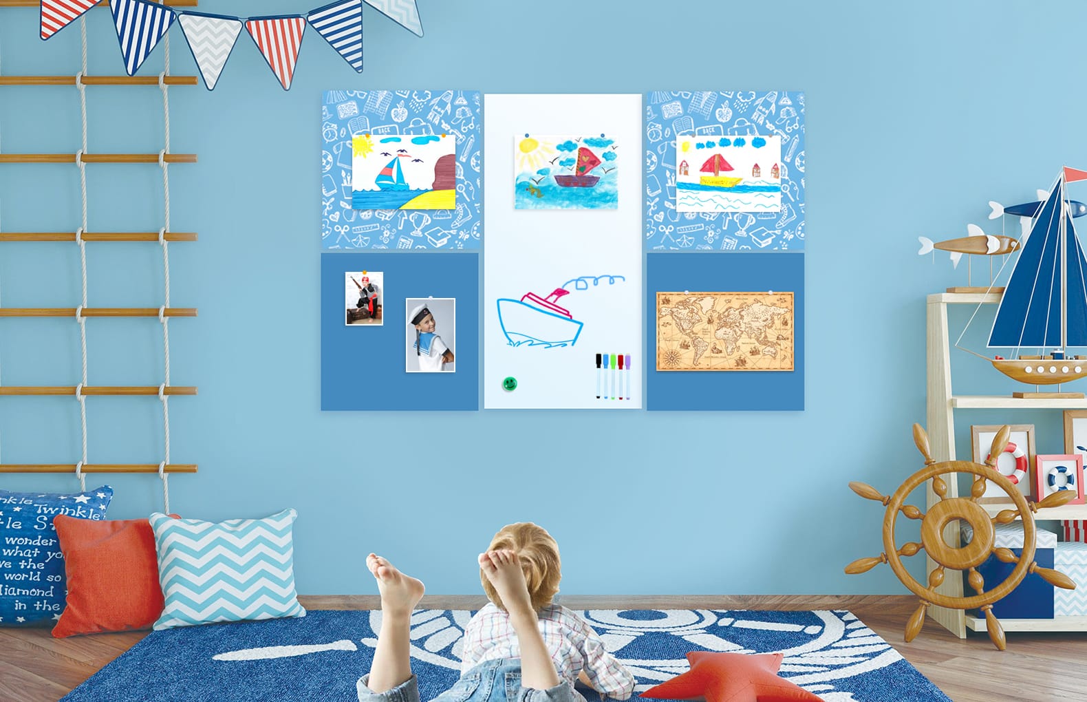 Вы можете комбинировать цветные панели или размещать их в интерьере с белыми магнитно-маркерными панелями. Такие комбинации задают стиль помещению, придают ему определенный характер.