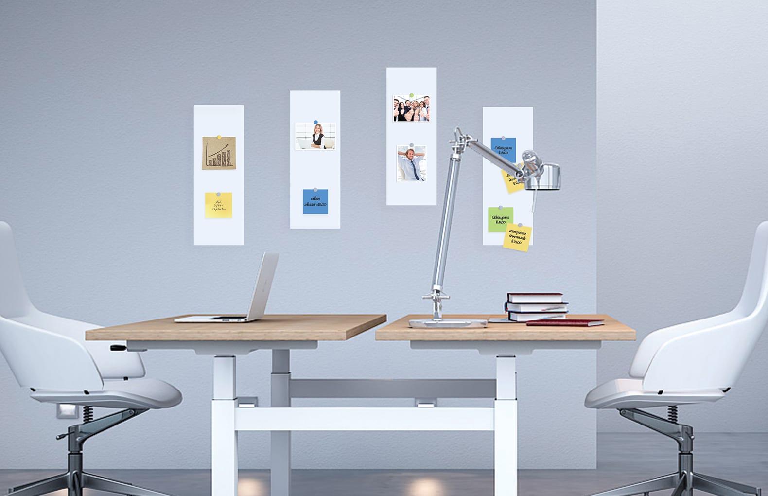 Вы можете комбинировать цветные панели или размещать их в интерьере с белыми магнитно-маркерными панелями. Такие комбинации задают стиль помещению, придают ему определенный характер.