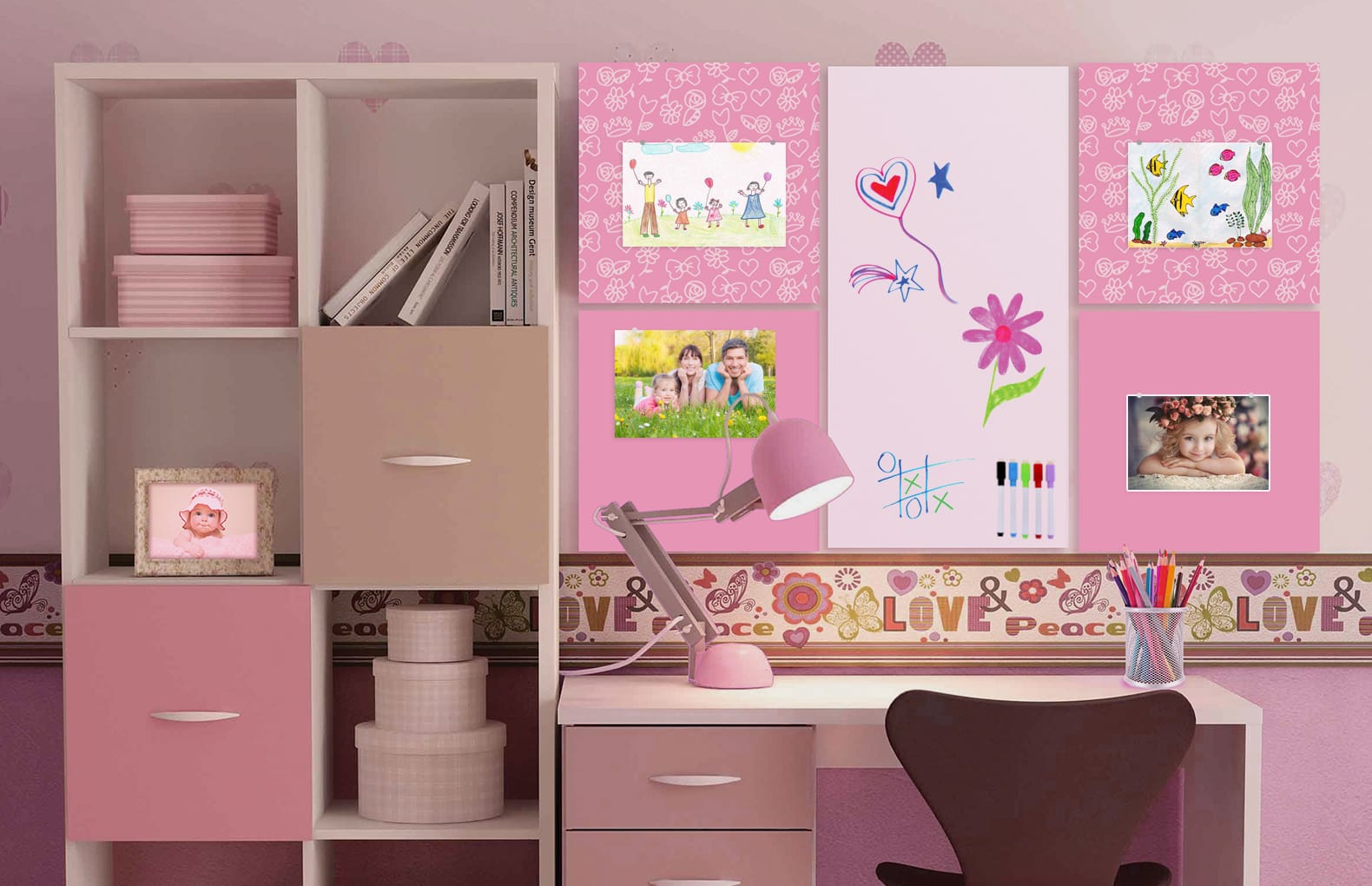 Размеркомпозиции - 160х105 см, размер панелей: - 100х50 см белая, 2 Магнитных панели - 50х50 см (нежно-розовые), 2 Магнитных панели - 50х50 см (принт Girl)