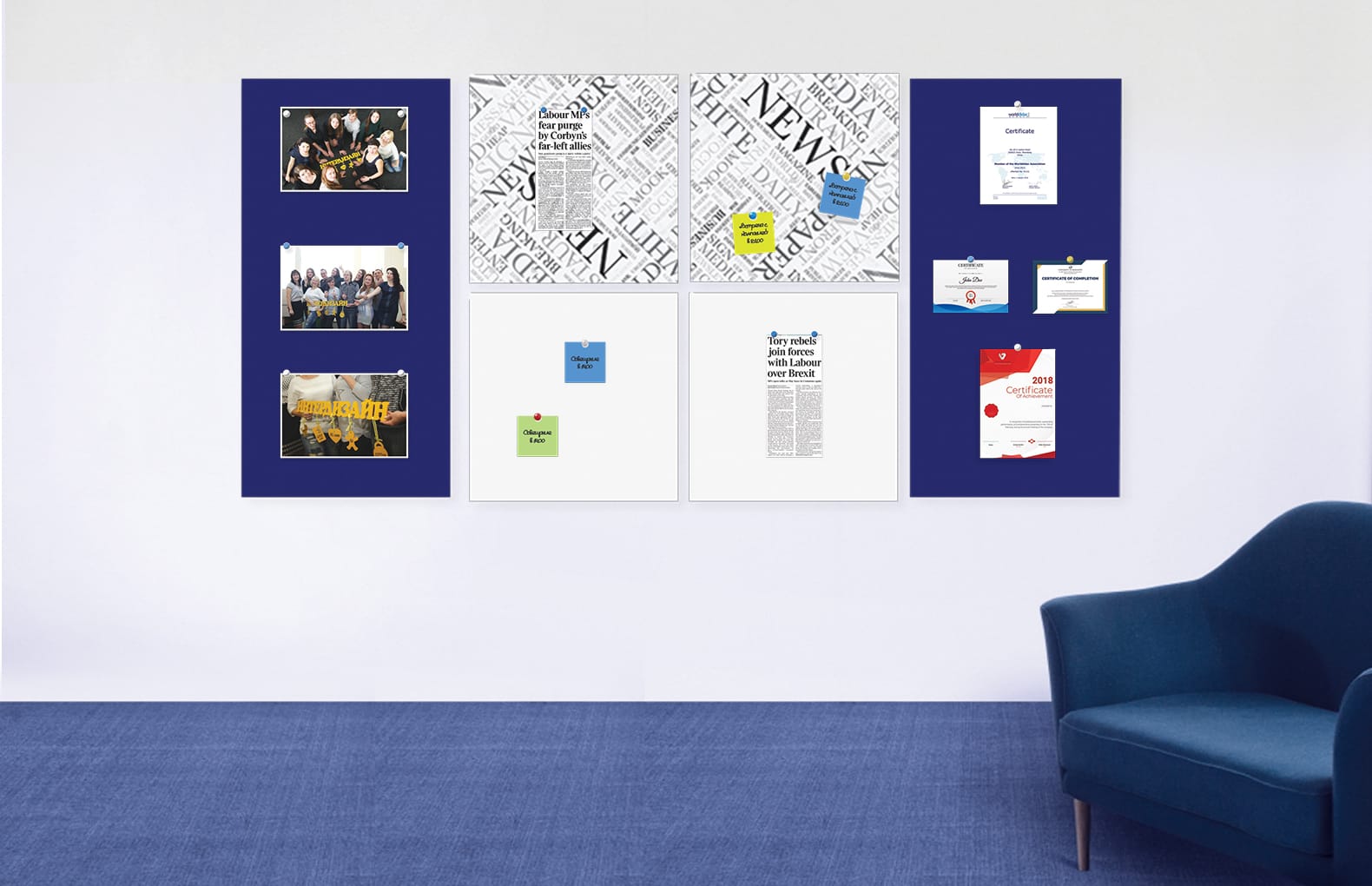Вы можете комбинировать цветные панели или размещать их в интерьере с белыми магнитно-маркерными панелями. Такие комбинации задают стиль помещению, придают ему определенный характер.