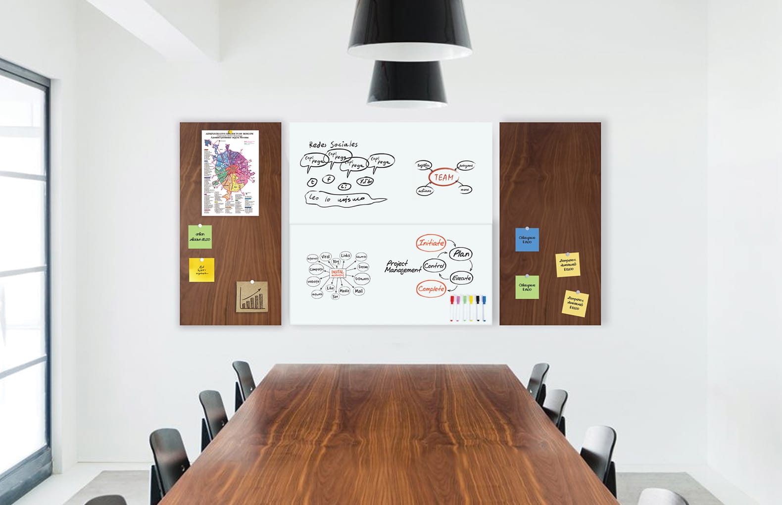 Белые панели имеют профессиональное маркерное покрытие Grafix. Вы можете писать маркером заметки, задания и планы и они легко стираются специальной губкой.