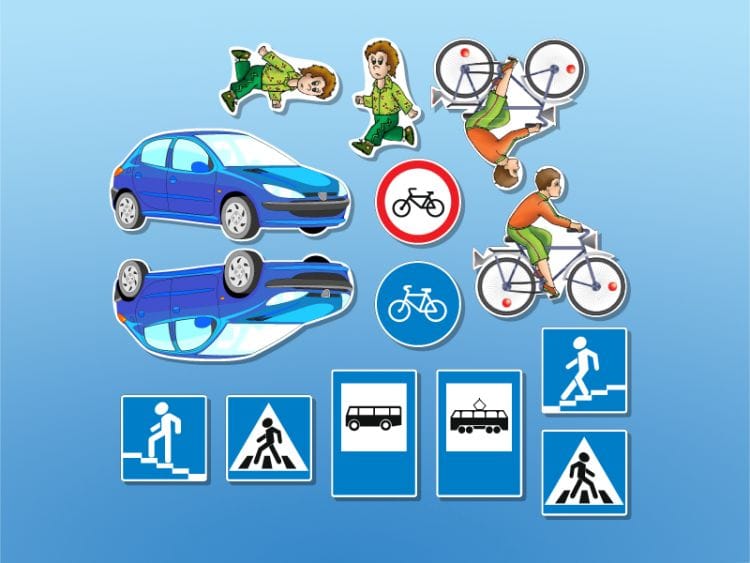 В комплект поставки входит набор цветных маркеров для нанесения записей на доску и комплект тематических магнитов "Азбука юного пешехода" в виде транспортных средств, пешеходов, велосипедистов и дорожных знаков для моделирования различных дорожных ситуаций.