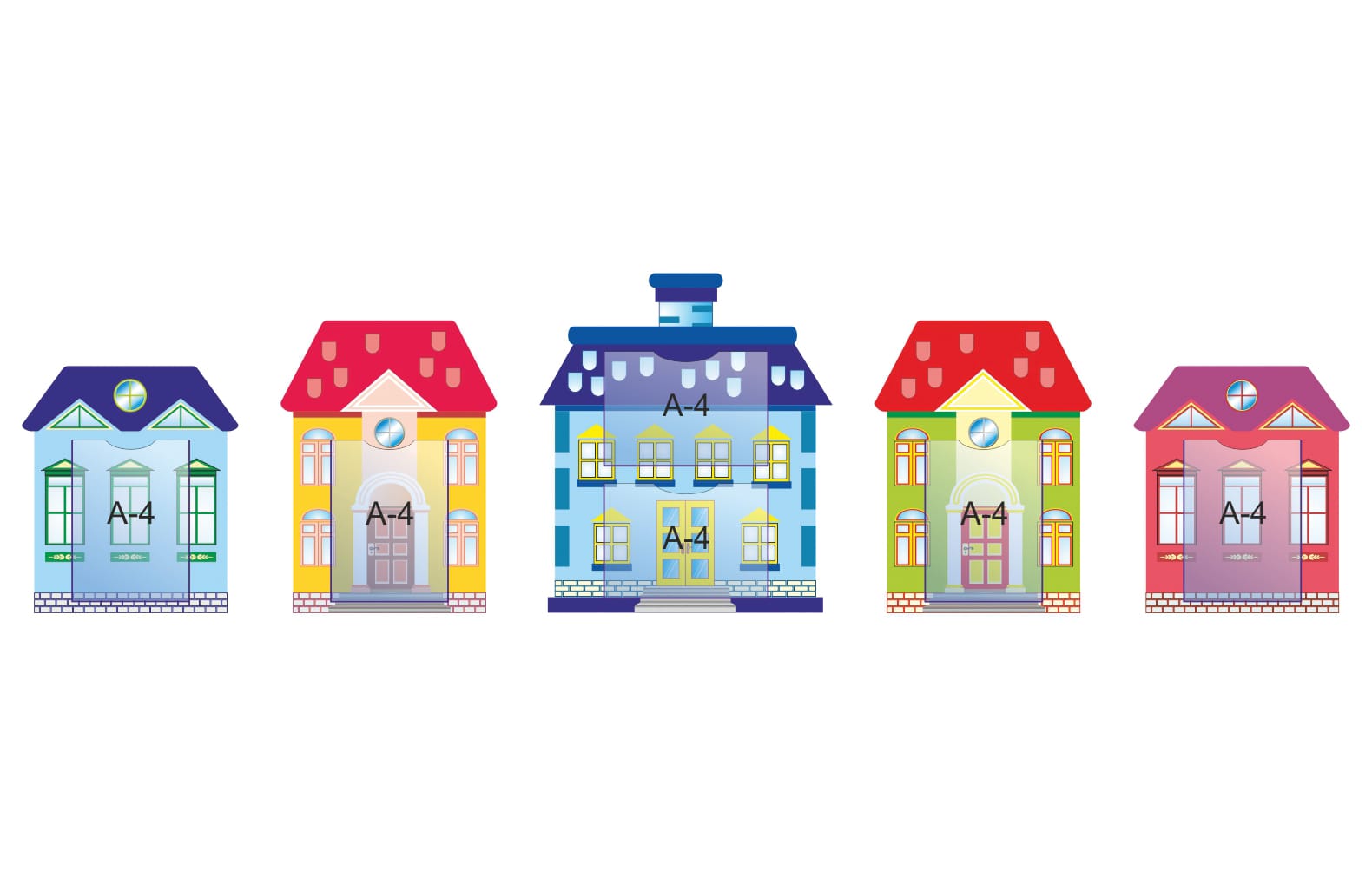 В комплектеДомик голубой с карманом А4 (41х47см), Домик желтый с карманом А4 (41х56см), Домик красный с карманом А4 (41х47см), Домик зеленый с карманом А4 (41х56см), Домик с двумя карманами А4 (56х65см).