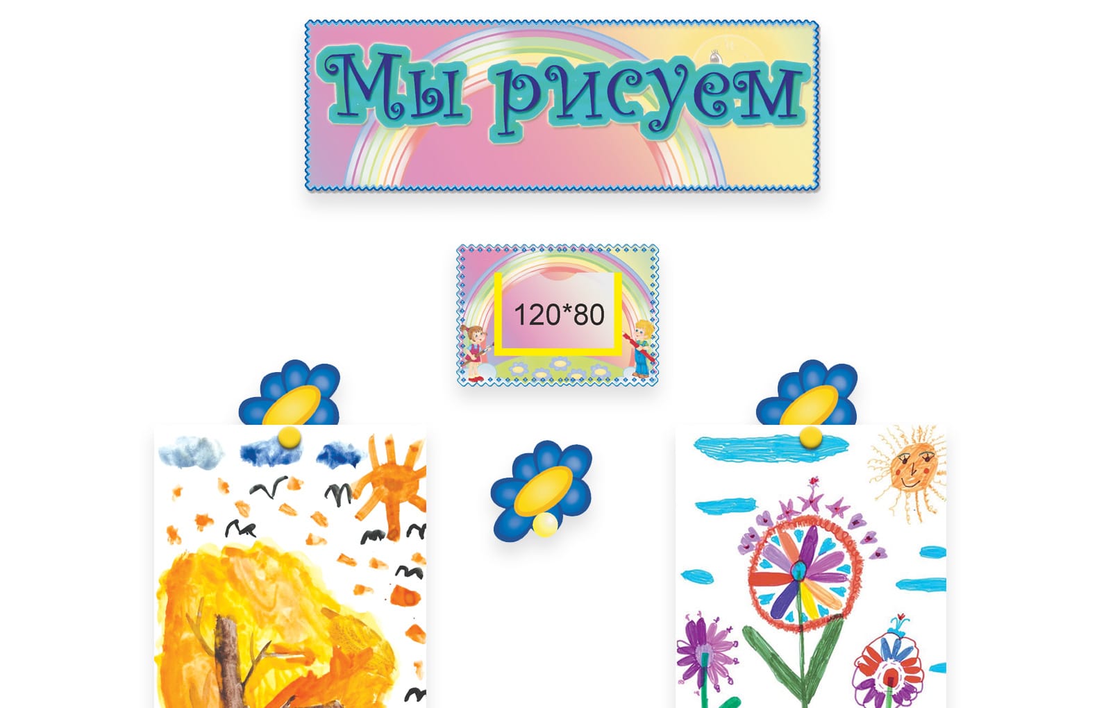 Комплект "Мы рисуем" стенд-шапка 50х17 см, карман 20х14 см, 30 креплений для рисунков 10х10 см