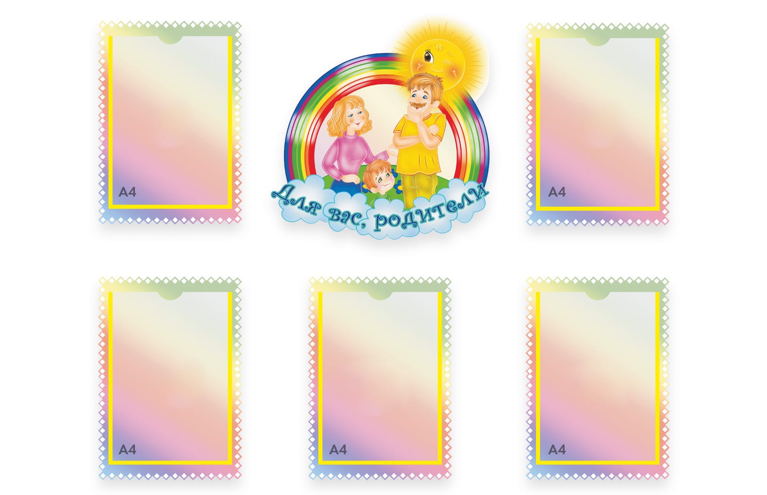 Комплект стендов "Для вас родители" - центр 40х42см, 5 стендов с карманом А4 формата 28х38см