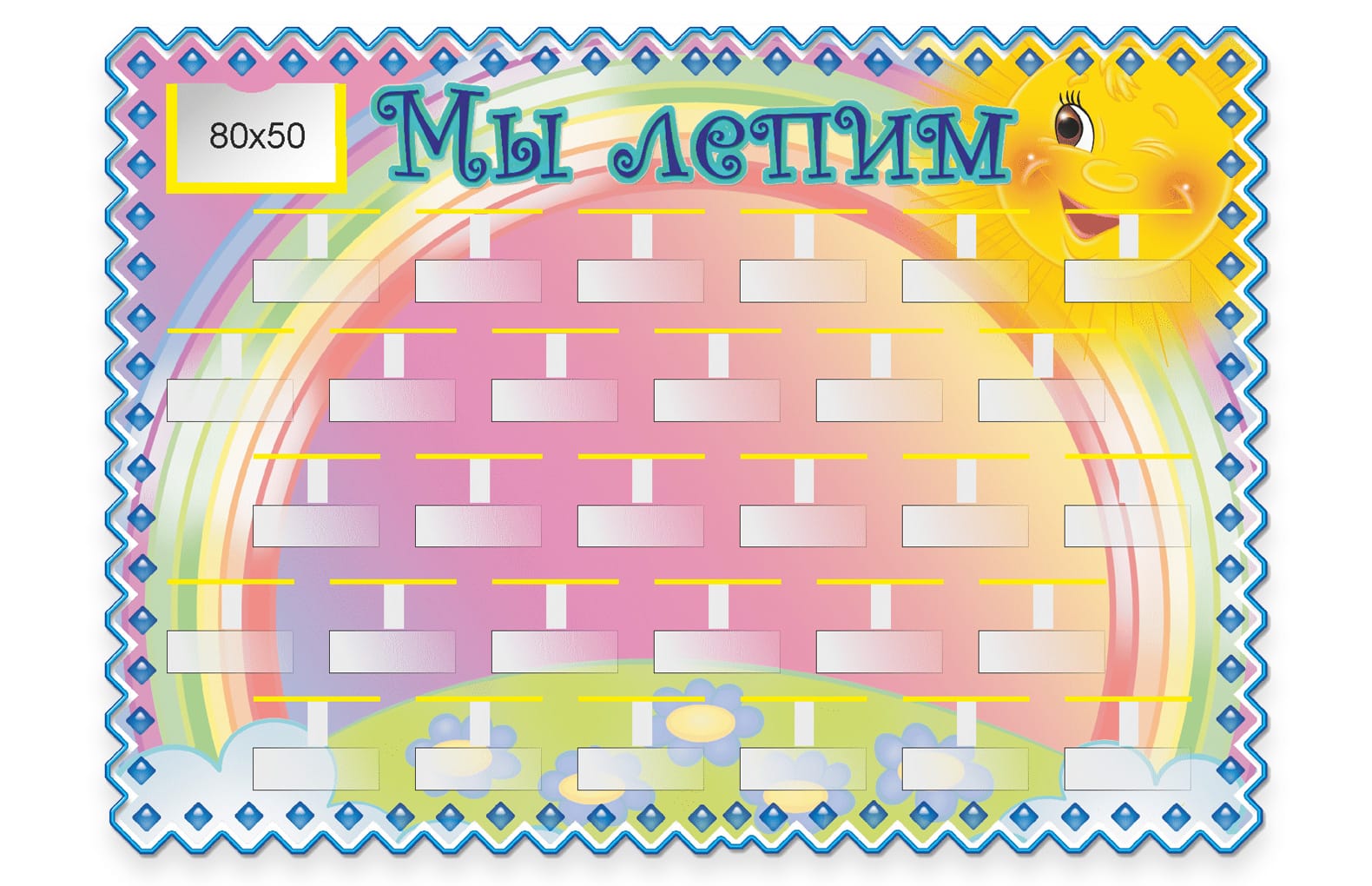 Стенд для поделок "Мы лепим" 56х40см, 30 полочек, карман 8х5 см