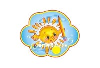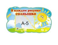 Композиция для детских рисунков из набора "Солнышко" состоит из стенд-шапки (500х300 мм) с карманом А5 формата и 30 различных креплений (150х120 мм).