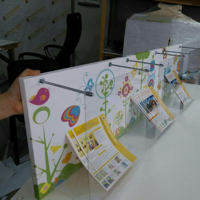 Для изготовления зон мы можем использовать широкий ассортимент материалов: МДФ, ПВХ, Плексиглас, Акрил, Пластик. Изображение на них будет нанесено с защитой от ультрафиолетового излучения, что несомненно позволит оставаться ярким и не выгорать радуя глаз и поднимая настроение. Вместе с вами мы можем подобрать все необходимые навесные элементы и крепежи: магнитные подложки, кармашки из акрила, прозрачного ПВХ, полиэтилена, стекла. Еще мы можем усовершенствовать рекреационные зоны при помощи досок с расписаниями или магнитно-маркерными досками для заметок и просто для творческого изображения детьми своих мыслей идей и фантазий. Для прикрепления информации и листовок отличным вариантом будет служить пробковая доска.