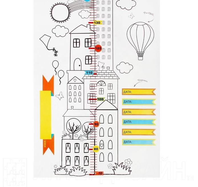 Весёлая наклейка поможет всей семье увидеть, как ребёнок тянется вверх! Стикеры для указания роста и возраста, яркие изображения и забавные герои — вот отличительные черты этого изделия! Такая вещь поможет защитить обои от пометок и преобразить детскую комнату.