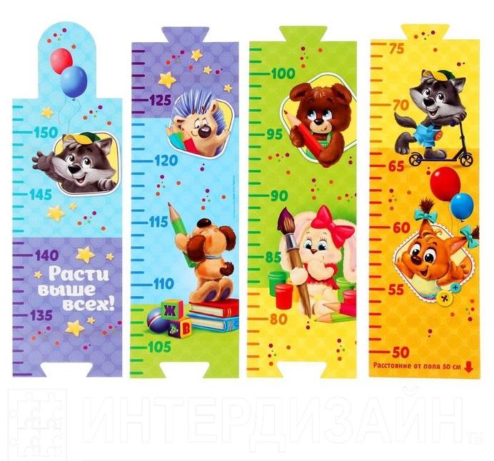 Проследить за тем, как ребёнок тянется вверх, поможет детский ростомер с забавными рисунками.