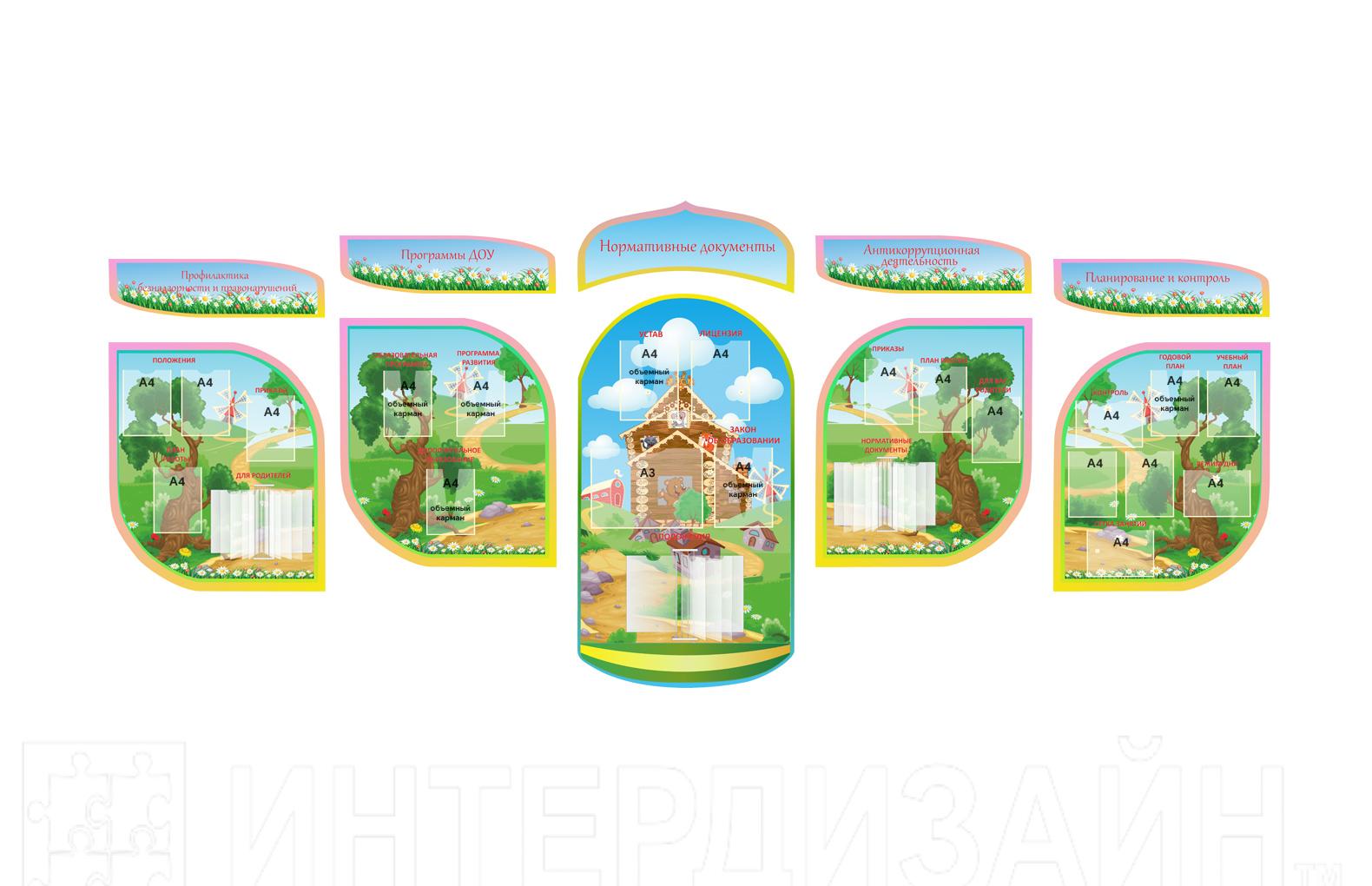 Компания Интердизайн является производителем и отвечает за качество своей продукции. Также, как преимущество - вы можете заказать индивидуальный макет стенда абсолютно бесплатно, выбрать количество и размер карманов, а также размер самого стенда.