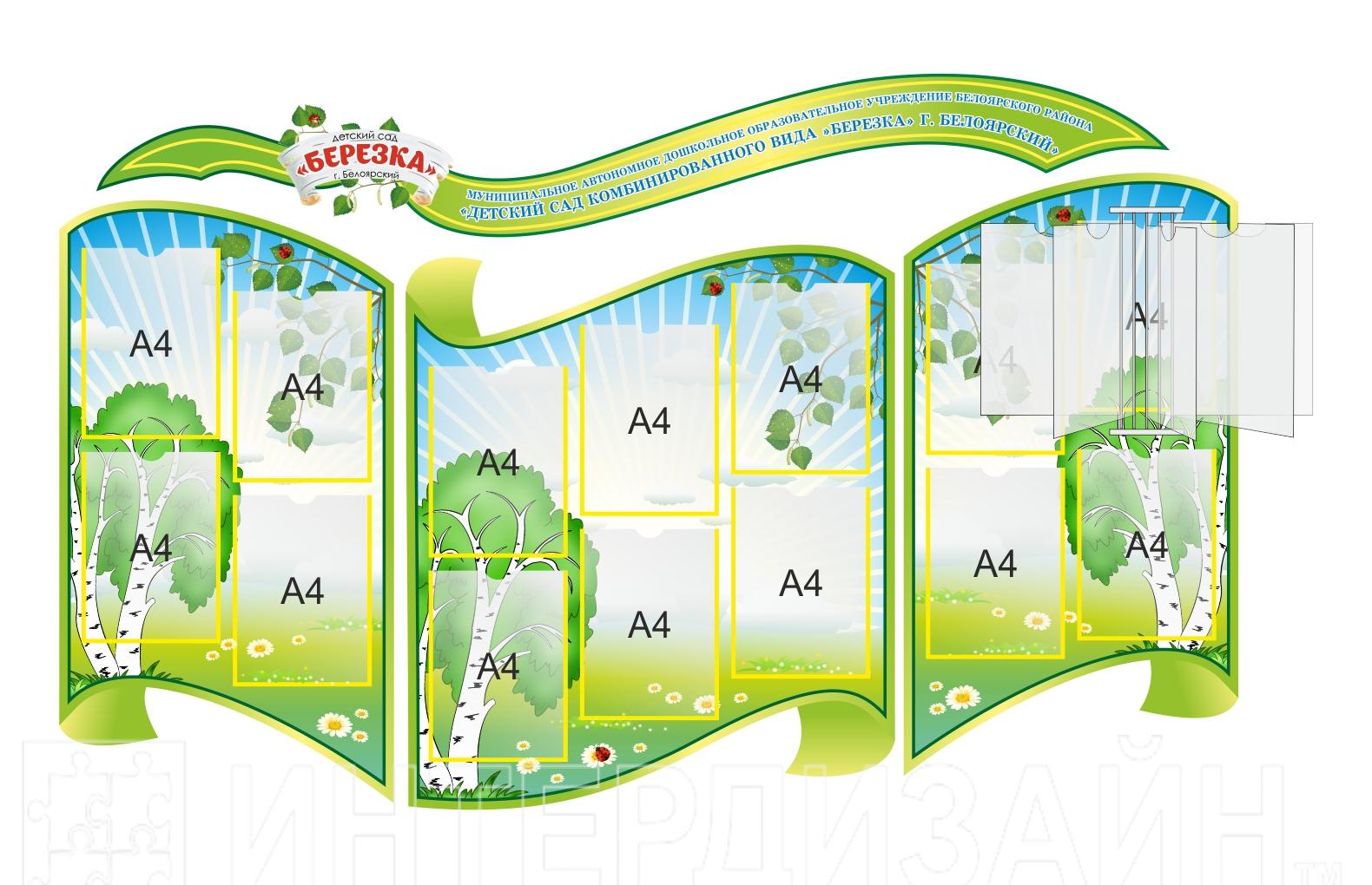 Компания Интердизайн является производителем и отвечает за качество своей продукции. Также, как преимущество - вы можете заказать индивидуальный макет стенда для своего детского сада абсолютно бесплатно, выбрать количество и размер карманов, а также размер самого стенда.