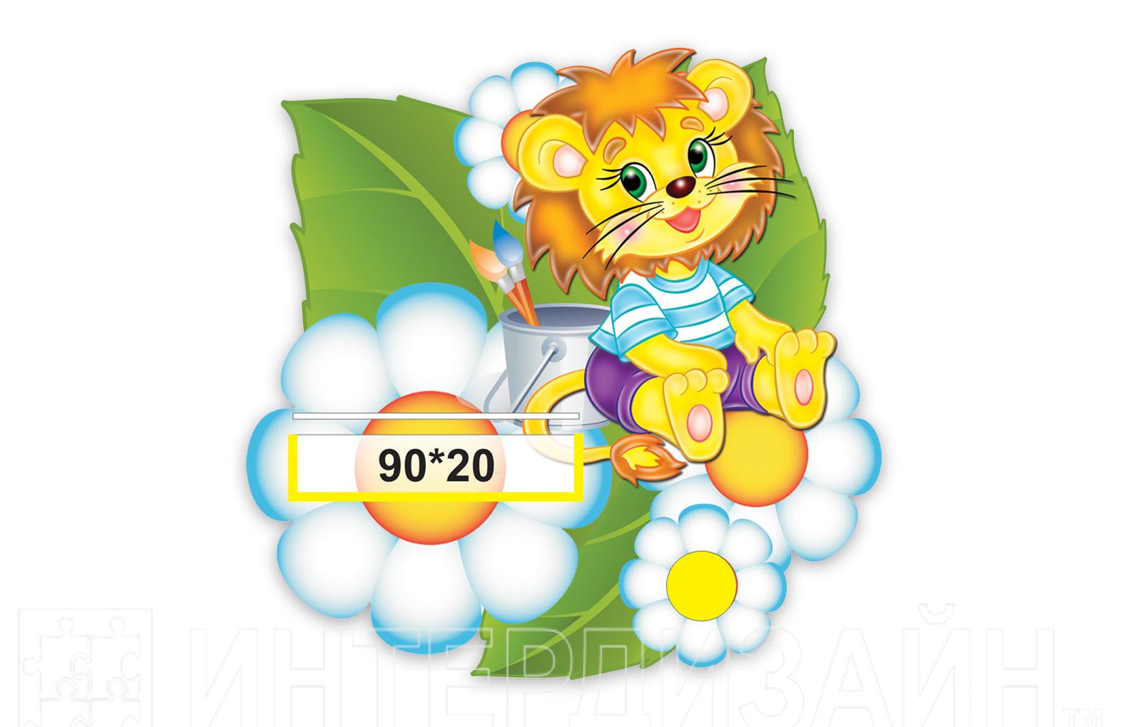 Многофункциональное крепление "Львенок" - содержит полочку для поделки, крепление для рисунка, кармашек для фамилии ребенка размером 90х20 мм.