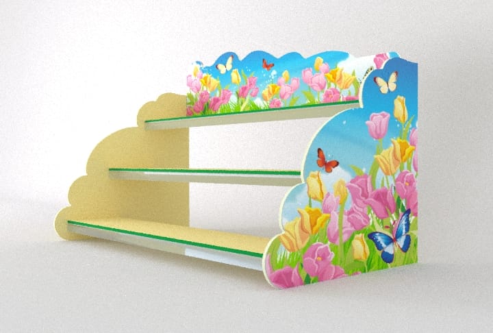 Прекрасное художественное оформление и удобный обзор детских работ вам гарантирует подставка для поделок «Бабочки в тюльпанах».