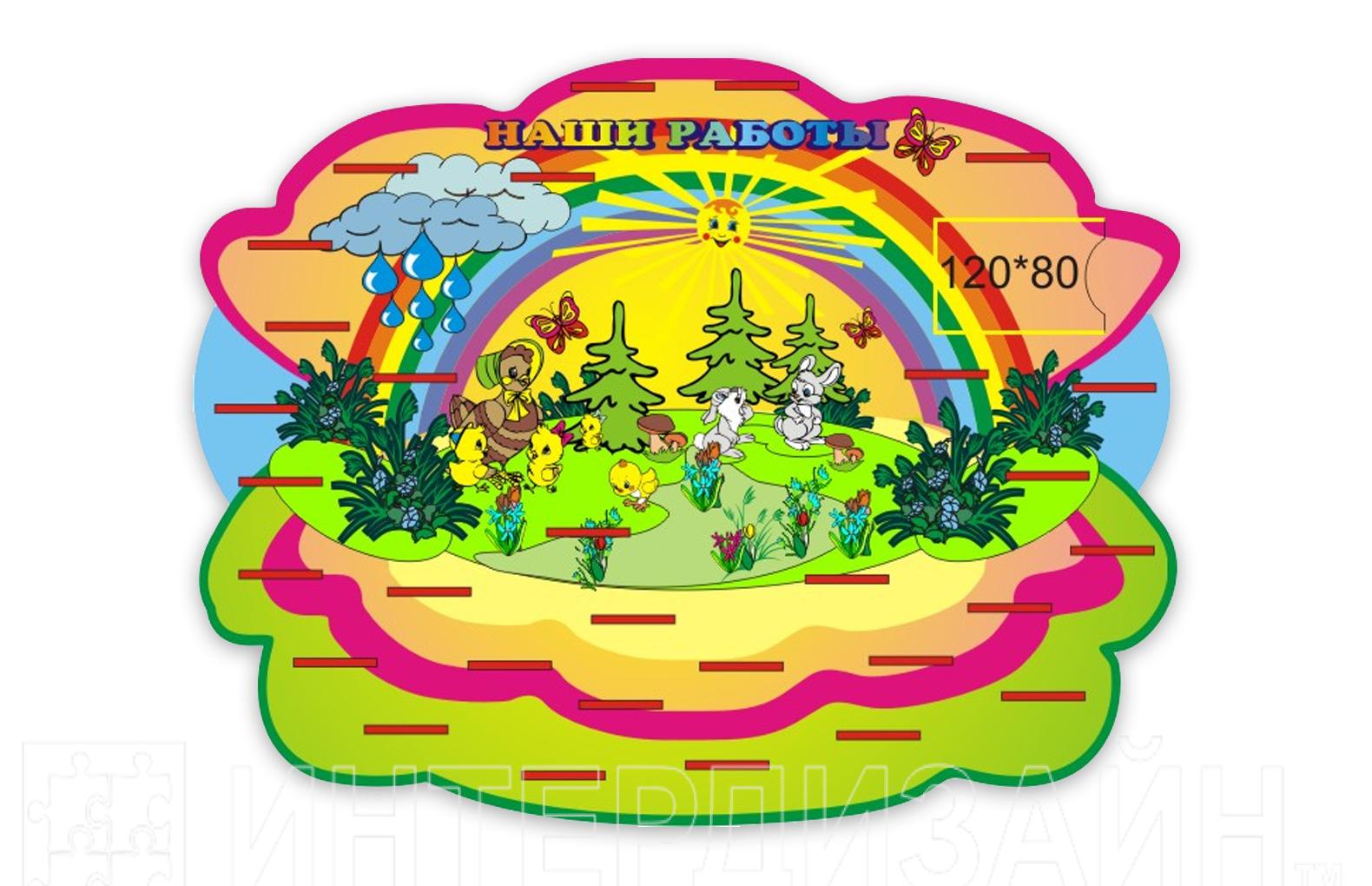 Дополнительно к стенду поставляется 30 полок для поделок из пластилина. Вместе с полочками поставляются винты; на стенде обозначены места, где полки следует прикручивать.