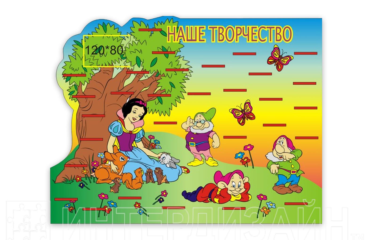 Стенд-подставка для лепки Белоснежка (30 полок) - cтенд изготовлен из пластика ПВХ толщиной 3 мм. Изображение наносится на пленку или непосредственно на пластик.
