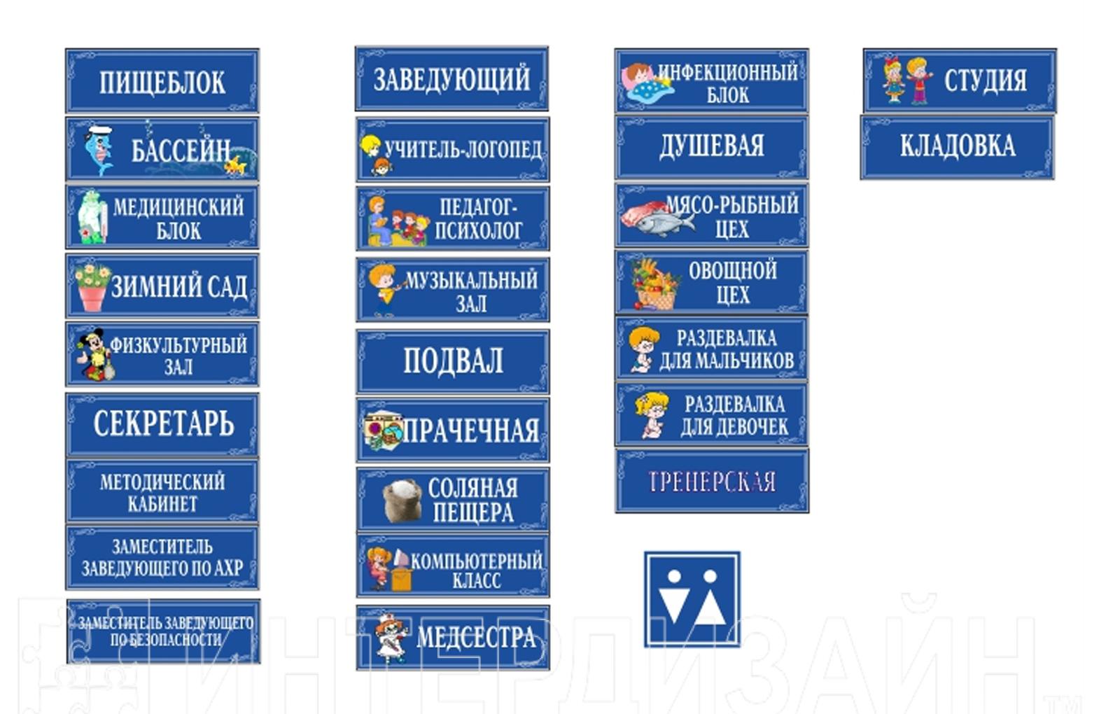 По Вашему желанию комплектация и размер табличек могут быть изменены. Также возможен другой вариант цвета и надписей.