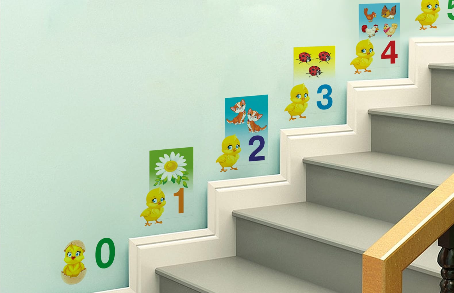 Таблички для обучения счета (оформление лестницы детского сада) комплект - Описание