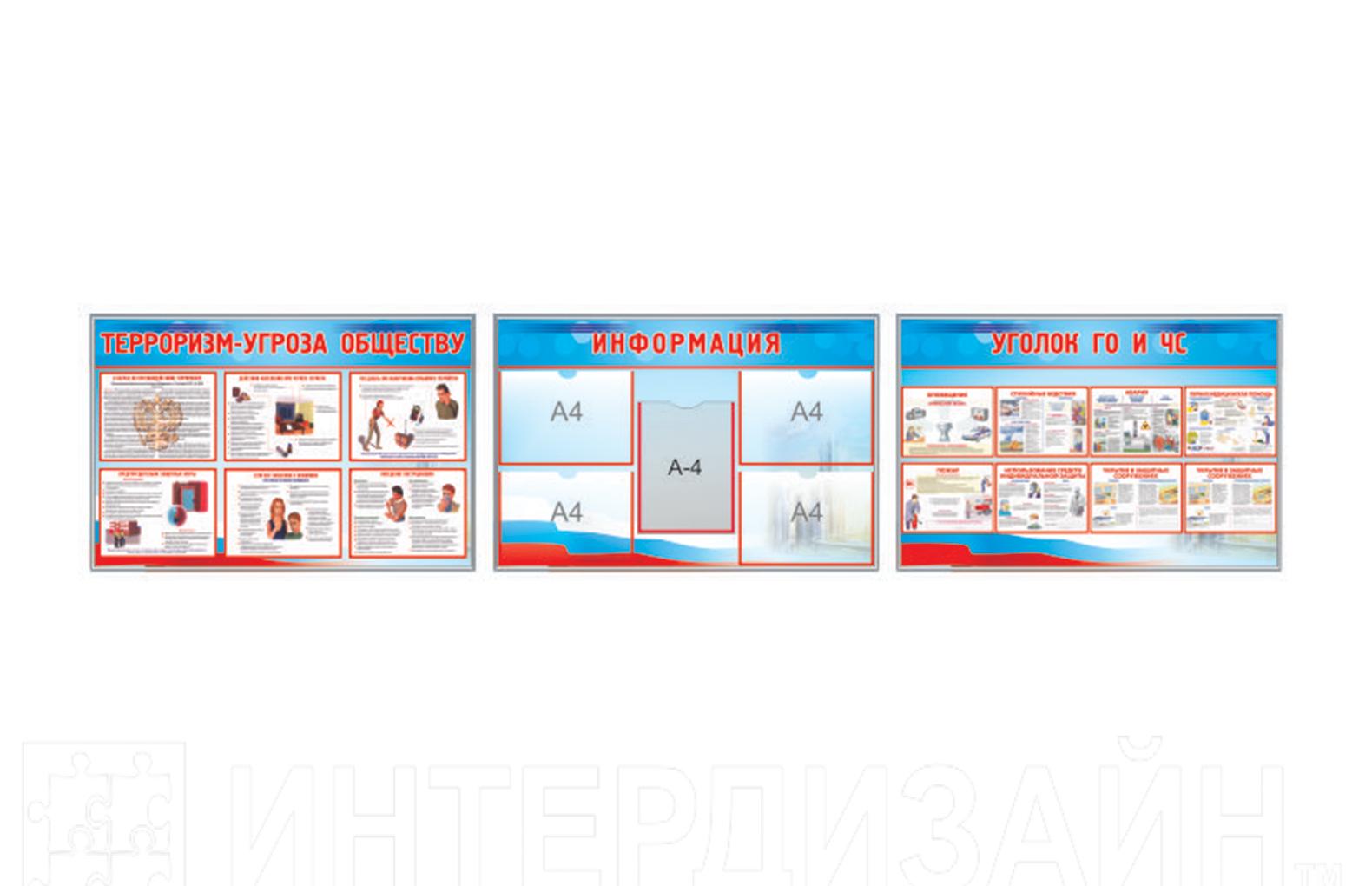 На сегодняшний день тема терроризма особенно актуальна для многих народов и стран мира. Наши граждане, к сожалению, не являются исключением. Поэтому начинать рассказывать и знакомить с мерами безопасности людей необходимо уже со школьной скамьи. Для этих целей отведите место в учебном учреждении и грамотно подойдите к оборудованию уголка ГО и ЧС. Информационные стенды по терроризму от компании ИНТЕРДИЗАЙН помогут Вам без проблем справиться с этой задачей. Информация на них подана таким образом, что легко воспринимается даже ребенком и при угрозе или опасности обязательно всплывет в памяти каждого человека.