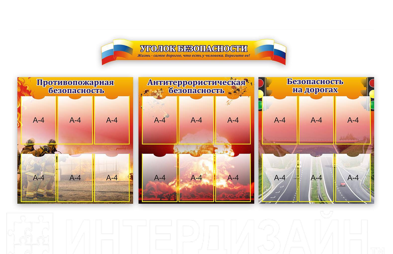 Каждый из трех основных стендов композиции содержит 6 карманов А4.