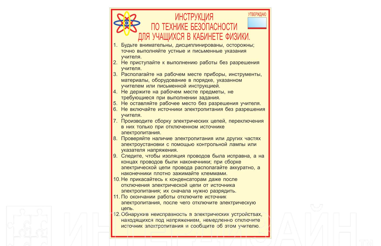 Стенд "Охрана труда в кабинете физики" из пластика толщиной 3 мм