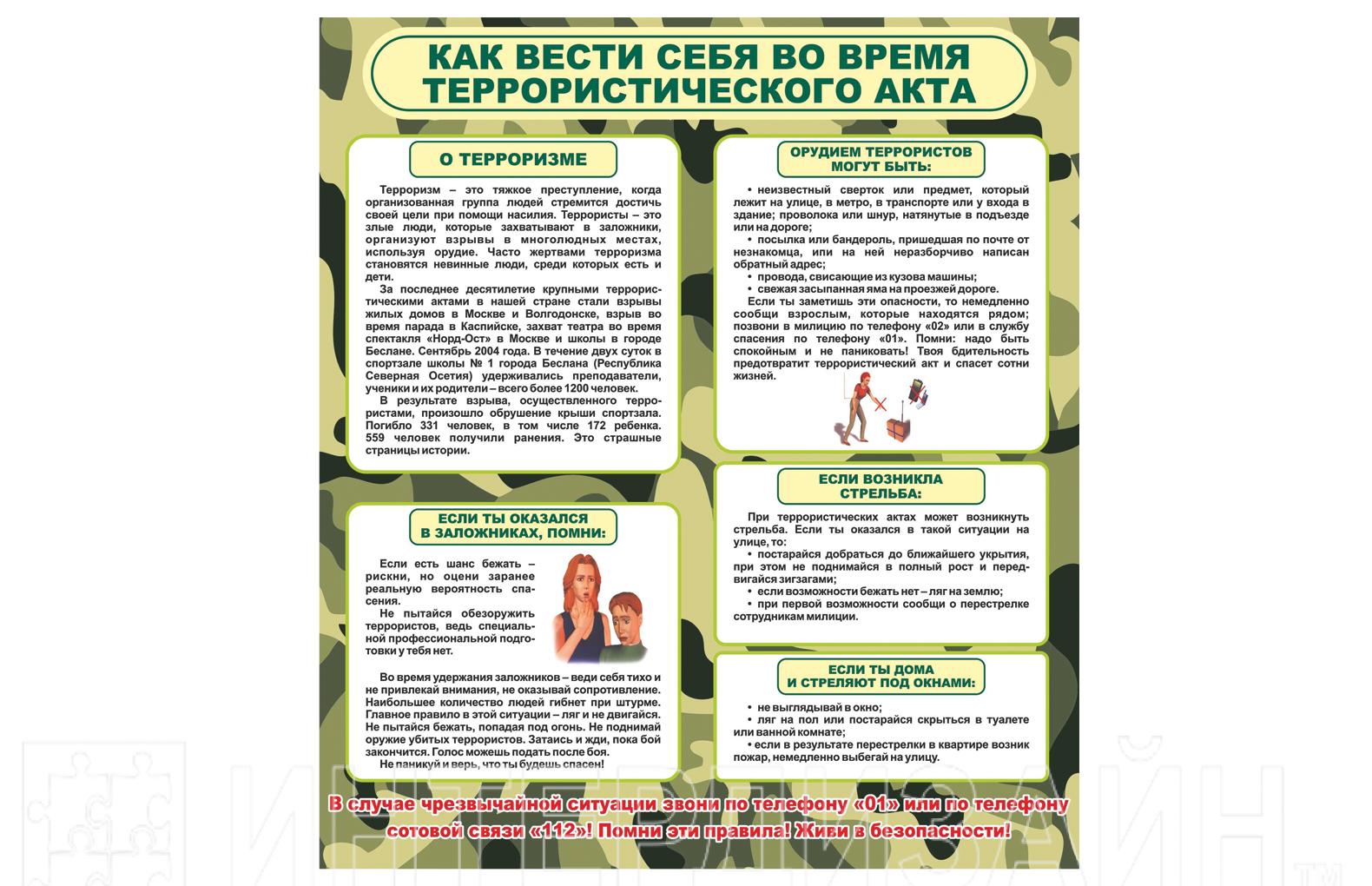 Стенд "Как вести себя во время террористического акта" - Описание