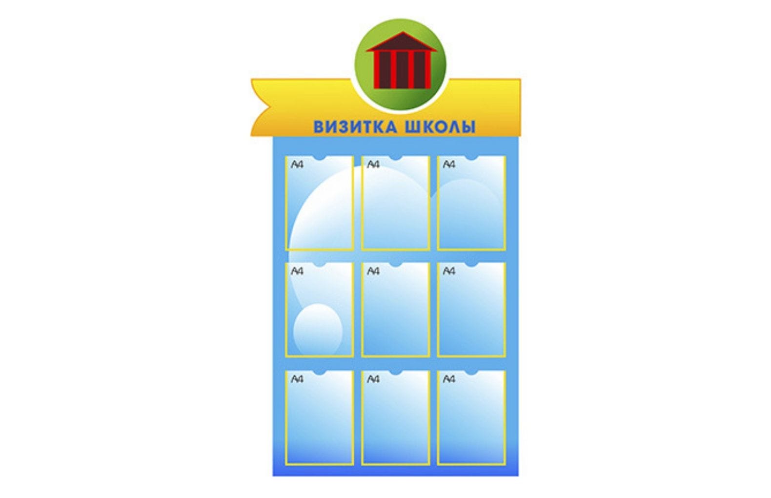 Стенд "Визитка школы" - 88х130 см, 9 карманов А4