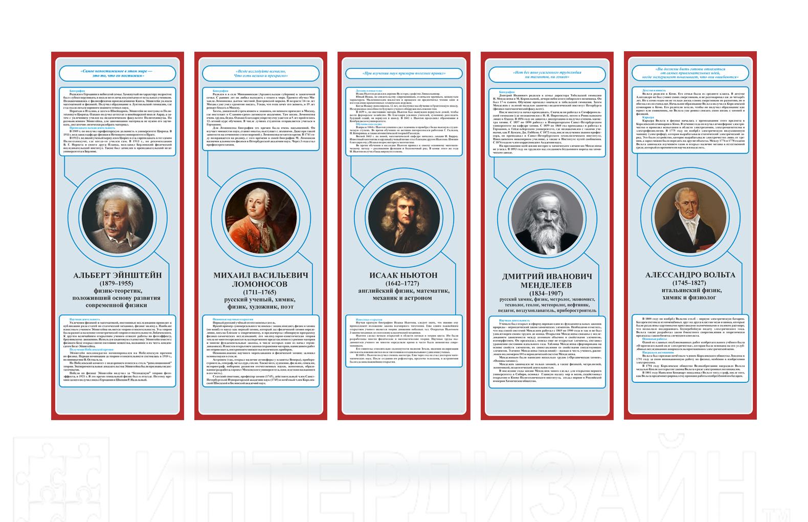 Комплект стендов для кабинета физики "Великие ученые и их деятельность" - Описание
