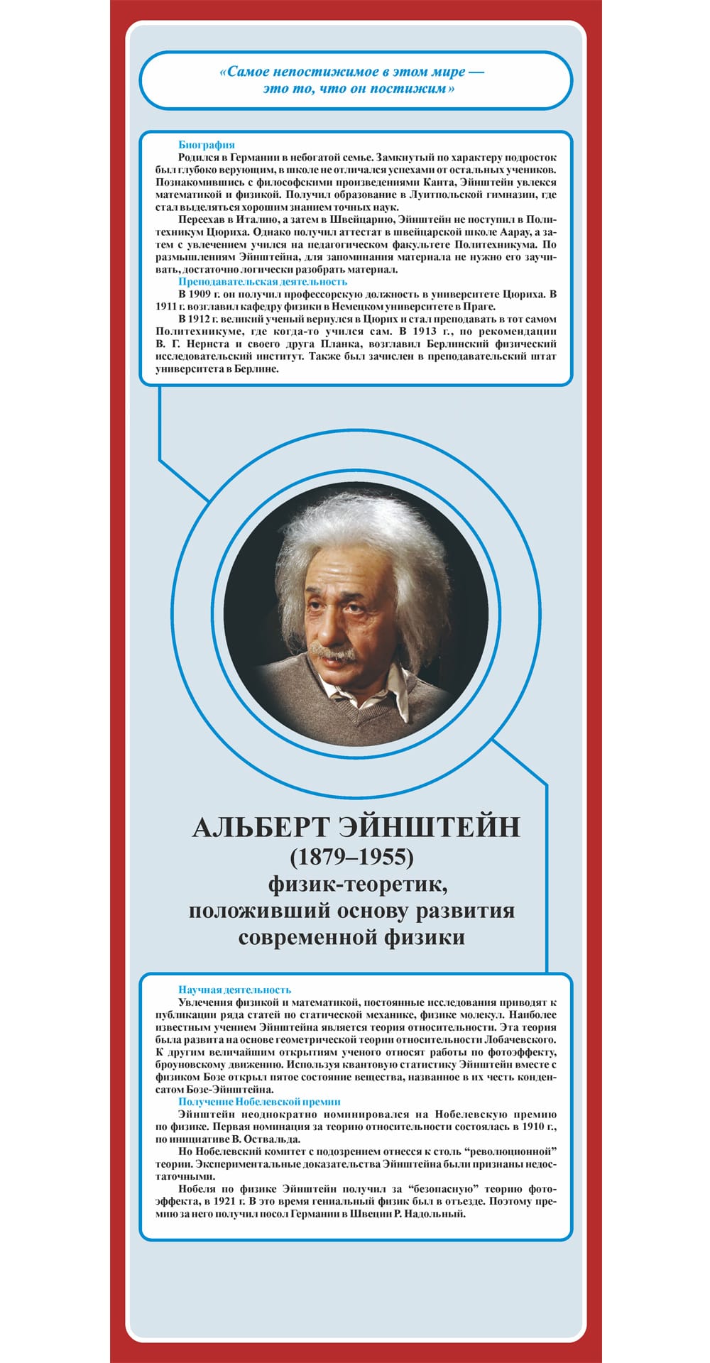 Комплект тематических стендов прекрасно украсит кабинет физики, поможет школьникам познакомиться с великими учеными, их деятельностью, открытиями и их биографией.