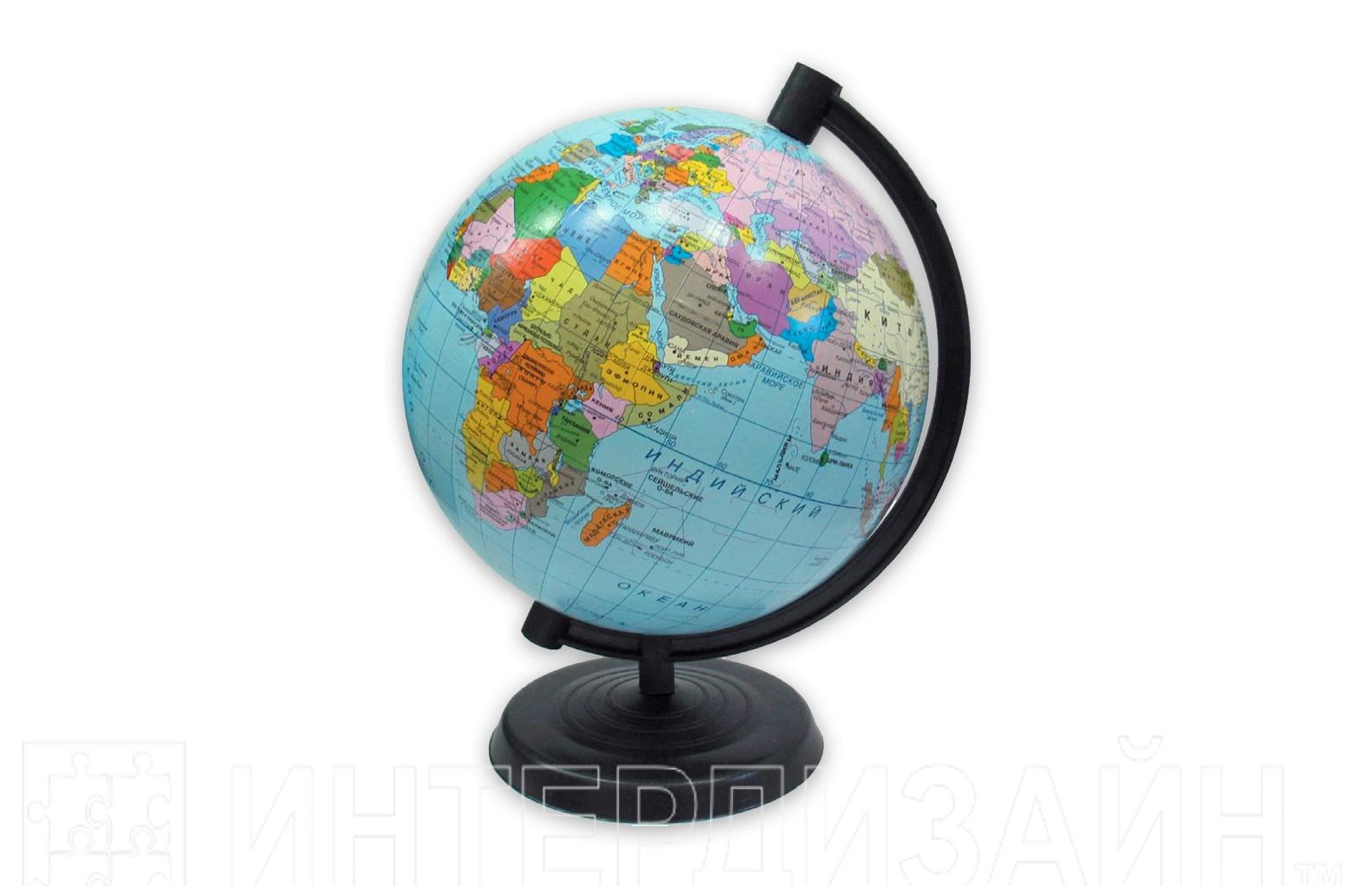 Наглядное пособие представляет собой уменьшенную модель Земли с физической картой.