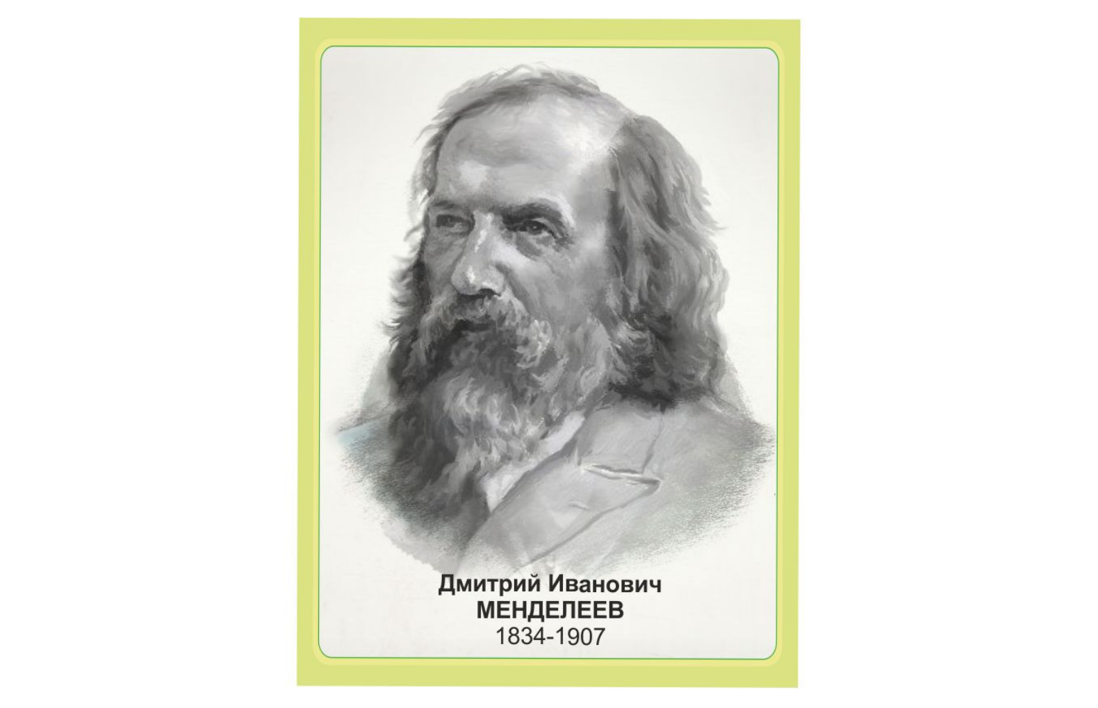 Дми́трий Ива́нович Менделе́ев (27 января [8 февраля] 1834, Тобольск — 20 января [2 февраля] 1907, Санкт-Петербург) — русский учёный-энциклопедист: химик, физикохимик, физик, метролог, экономист, технолог, геолог, метеоролог, нефтяник, педагог, воздухоплаватель, приборостроитель. Профессор Санкт-Петербургского университета; член-корреспондент по разряду «физический» Императорской Санкт-Петербургской Академии наук. Среди наиболее известных открытий — периодический закон химических элементов, один из фундаментальных законов мироздания, неотъемлемый для всего естествознания. Автор классического труда «Основы химии».